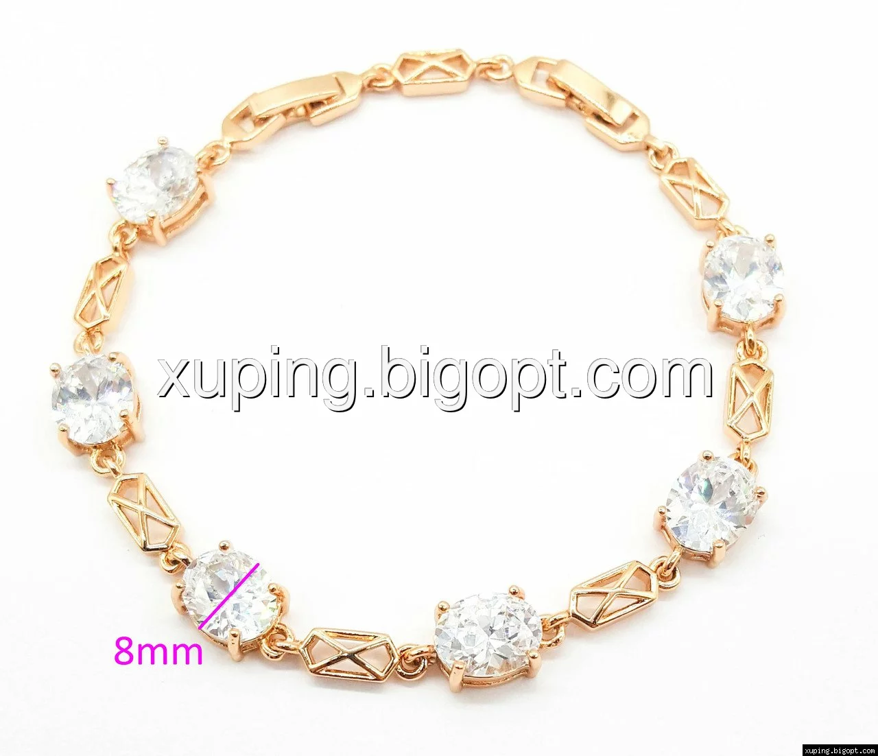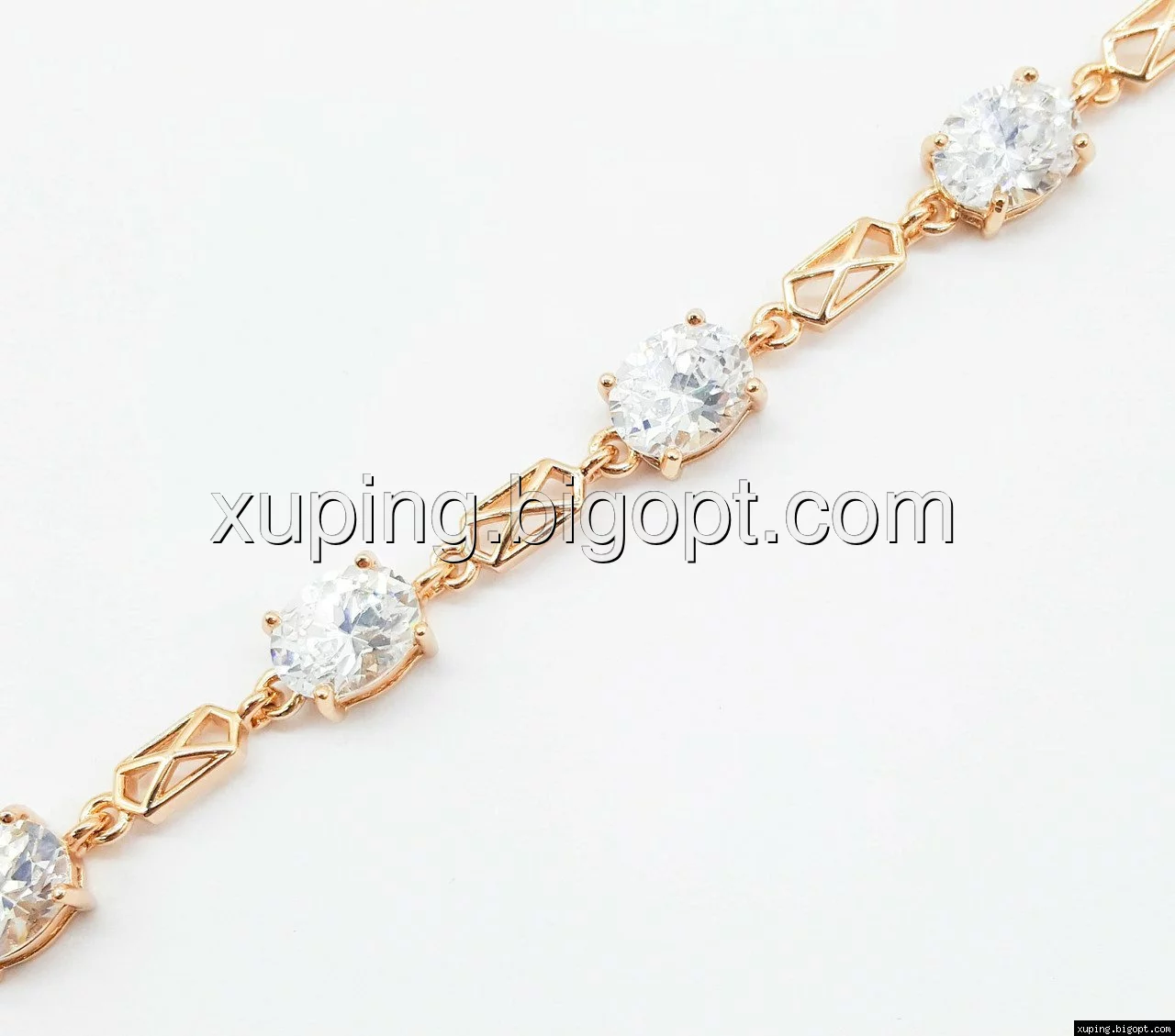 Браслет выполнен из медицинского сплава, который  изготовляется на основе латуни. Сверху бижутерия покрыта позолотой  для того чтобы придать ей насыщенный цвет, яркий блеск и максимальное сходство с золотом. Кроме того, в качестве декора мастера используют цирконий, который крепится при помощи крапанов. Как известно этот камень широко применяется в ювелирном искусстве, так как он обладает восхитительным блеском и прочностью. Данная бижутерия представлена заводом-производителем марки «Xuping» – все изделия оригинальны и имеют одинаково высокое качество.