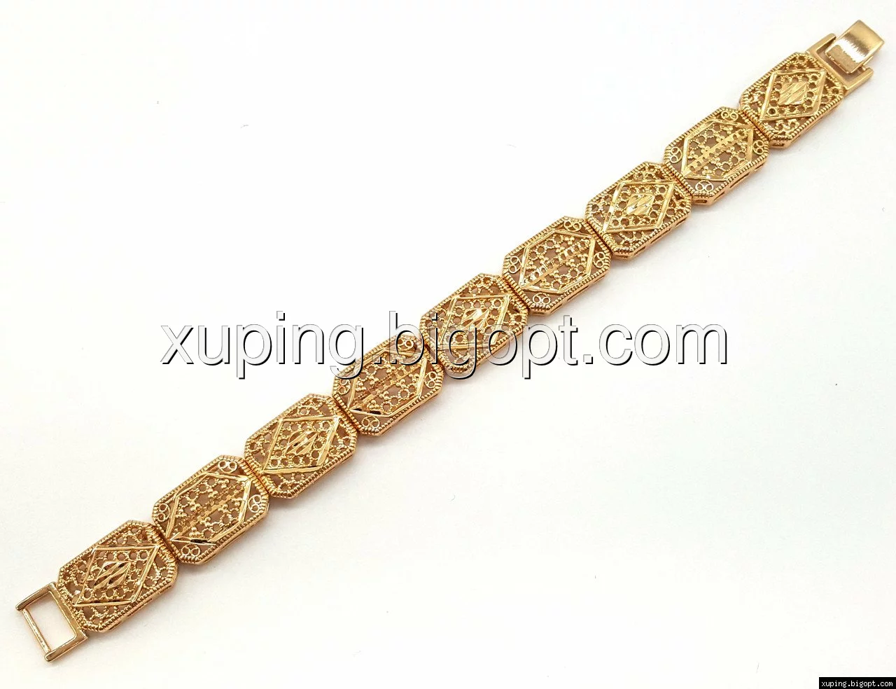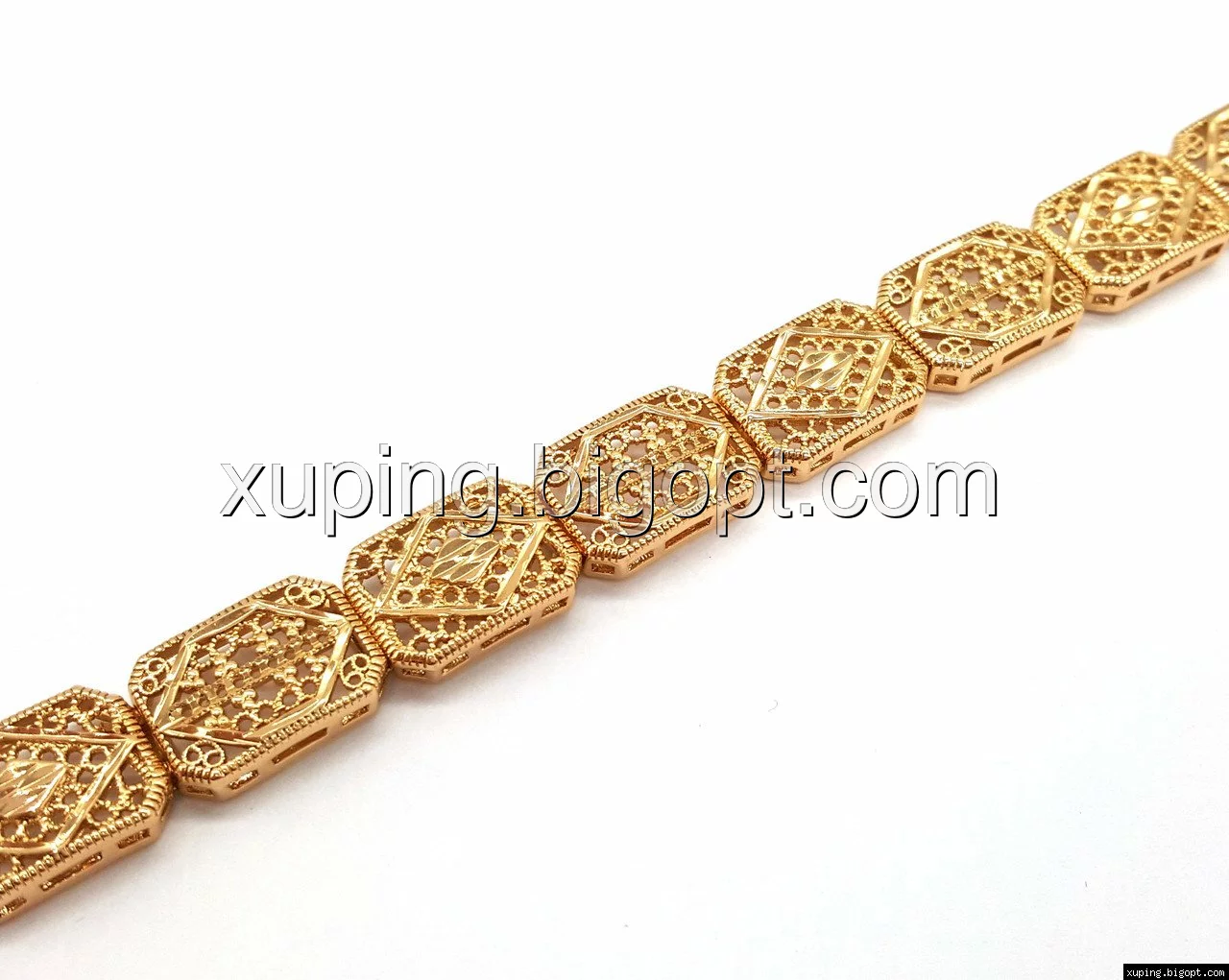 Браслет выполнен из медицинского сплава, который  изготовляется на основе латуни. Сверху бижутерия покрыта позолотой  для того чтобы придать ей насыщенный цвет, яркий блеск и максимальное сходство с золотом. Кроме того, в качестве декора мастера используют цирконий, который крепится при помощи крапанов. Как известно этот камень широко применяется в ювелирном искусстве, так как он обладает восхитительным блеском и прочностью. Данная бижутерия представлена заводом-производителем марки «Xuping» – все изделия оригинальны и имеют одинаково высокое качество.