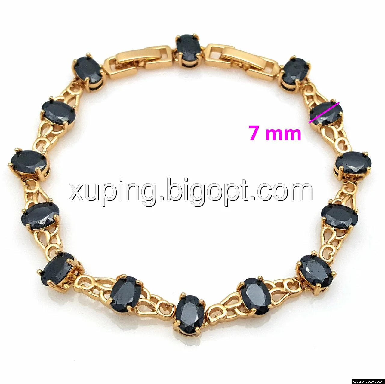 Браслет выполнен из медицинского сплава, который  изготовляется на основе латуни. Сверху бижутерия покрыта позолотой  для того чтобы придать ей насыщенный цвет, яркий блеск и максимальное сходство с золотом. Кроме того, в качестве декора мастера используют цирконий, который крепится при помощи клапанов. Как известно этот камень широко применяется в ювелирном искусстве, так как он обладает восхитительным блеском и прочностью. Данная бижутерия представлена заводом-производителем марки «Xuping» – все изделия оригинальны и имеют одинаково высокое качество.