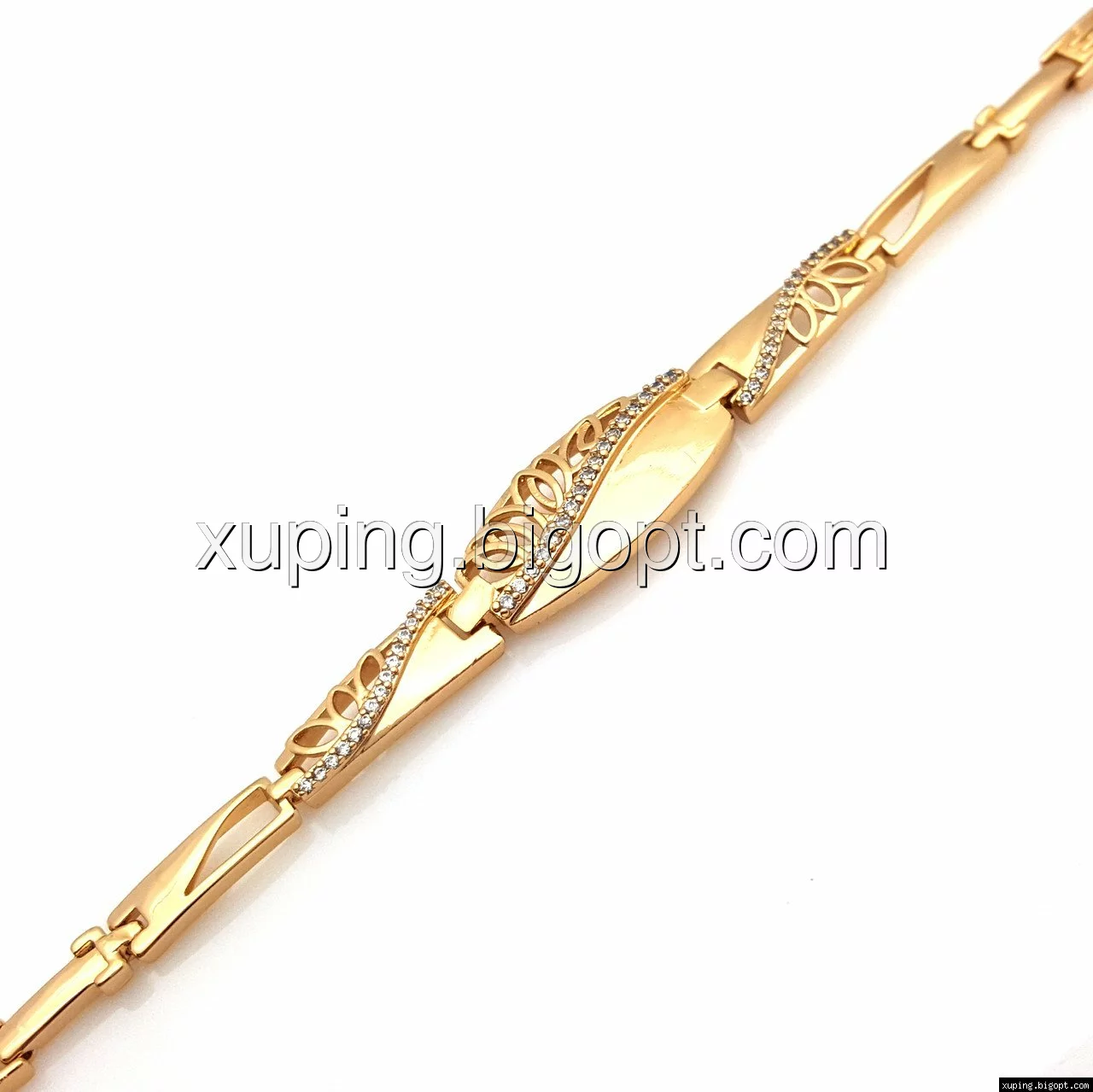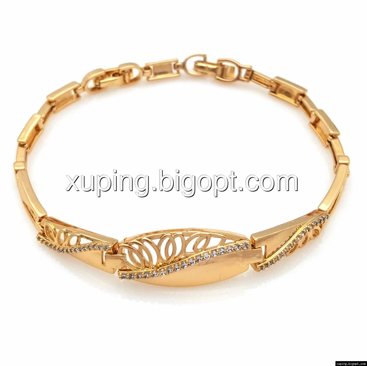 Браслет выполнен из медицинского сплава, который  изготовляется на основе латуни. Сверху бижутерия покрыта позолотой  для того чтобы придать ей насыщенный цвет, яркий блеск и максимальное сходство с золотом. Кроме того, в качестве декора мастера используют цирконий, который крепится при помощи клапанов. Как известно этот камень широко применяется в ювелирном искусстве, так как он обладает восхитительным блеском и прочностью. Данная бижутерия представлена заводом-производителем марки «Xuping» – все изделия оригинальны и имеют одинаково высокое качество.