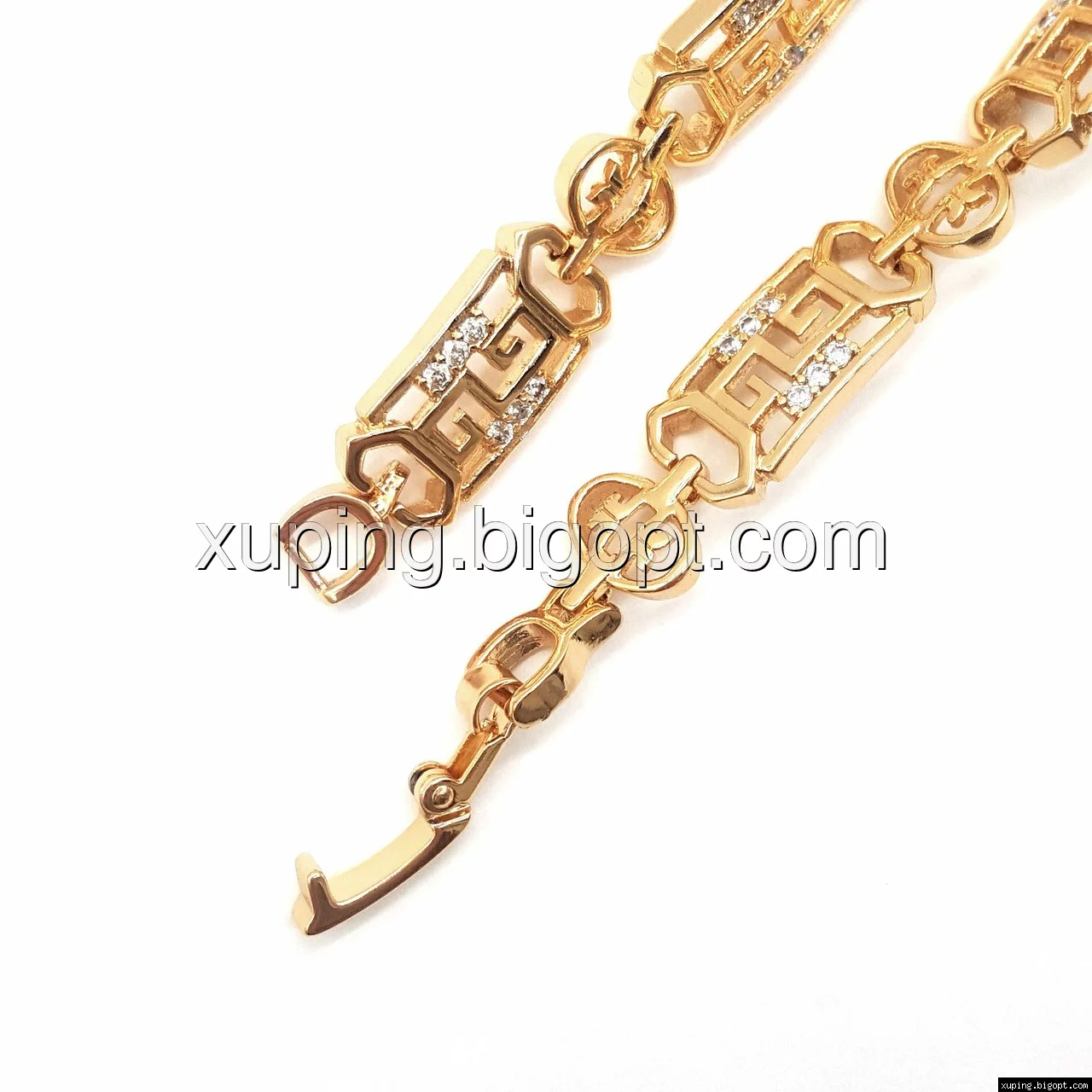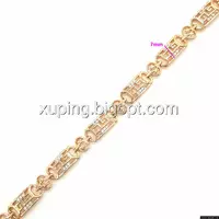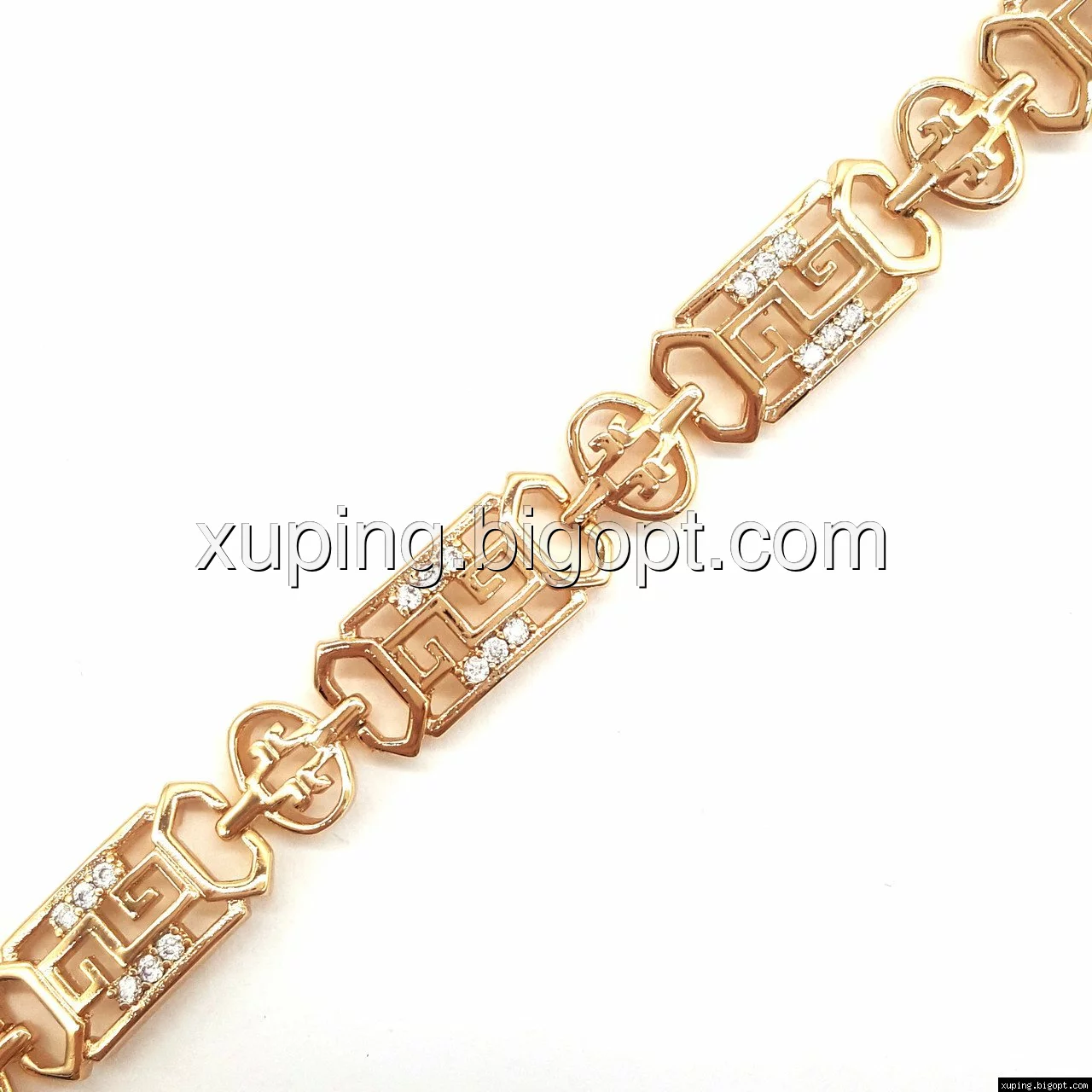Браслет выполнен из медицинского сплава, который  изготовляется на основе латуни. Сверху бижутерия покрыта позолотой  для того чтобы придать ей насыщенный цвет, яркий блеск и максимальное сходство с золотом. Кроме того, в качестве декора мастера используют цирконий, который крепится при помощи крапанов. Как известно этот камень широко применяется в ювелирном искусстве, так как он обладает восхитительным блеском и прочностью. Данная бижутерия представлена заводом-производителем марки «Xuping» – все изделия оригинальны и имеют одинаково высокое качество.