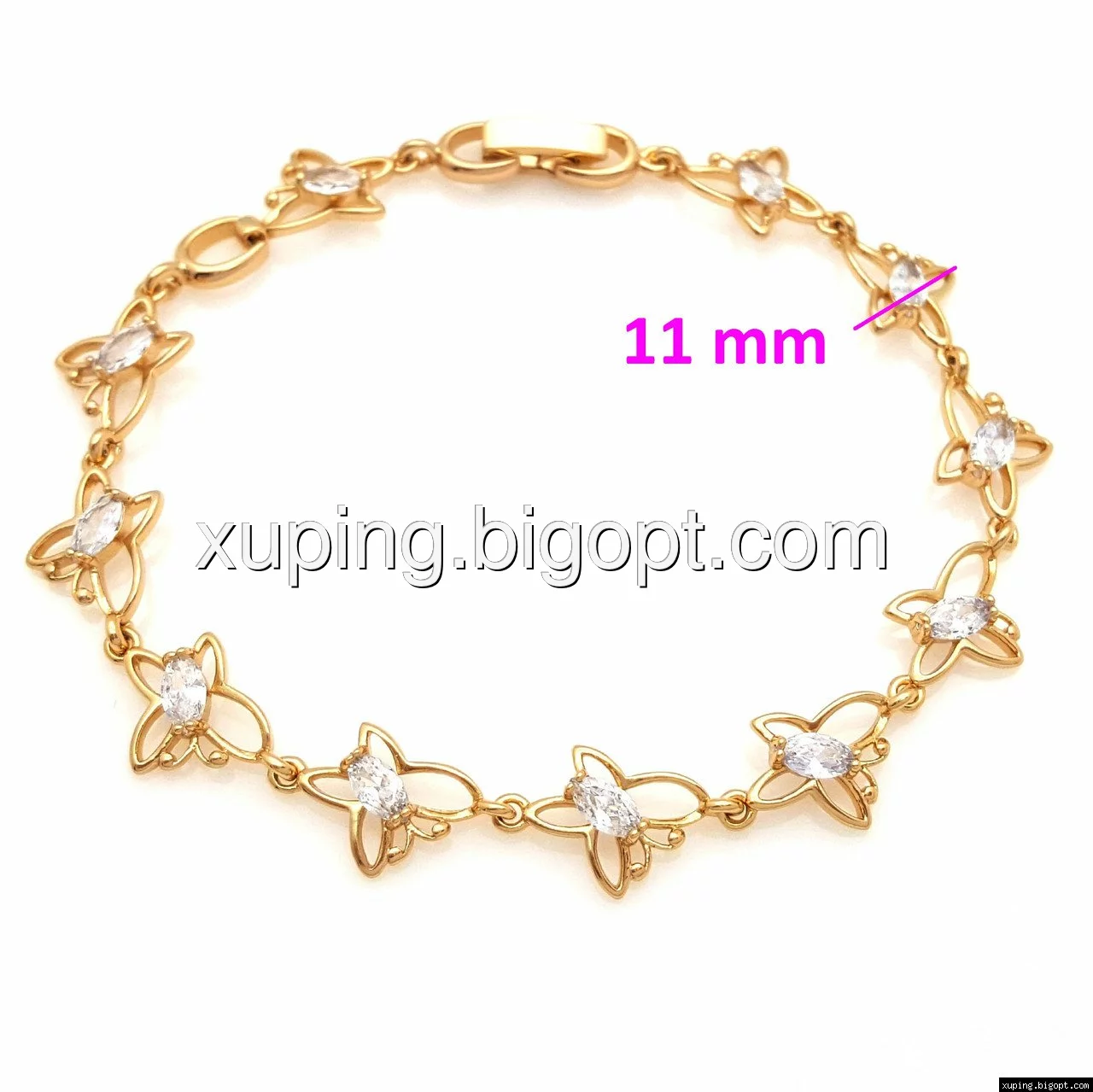 Браслет Бабочки с миндальным цирконием, р.18, р.20, позолота Xuping
