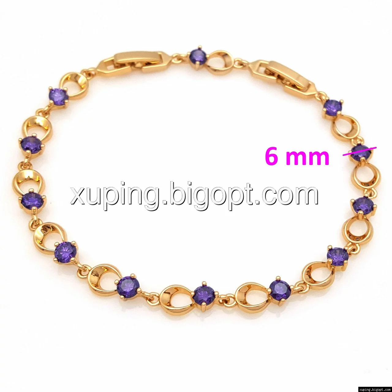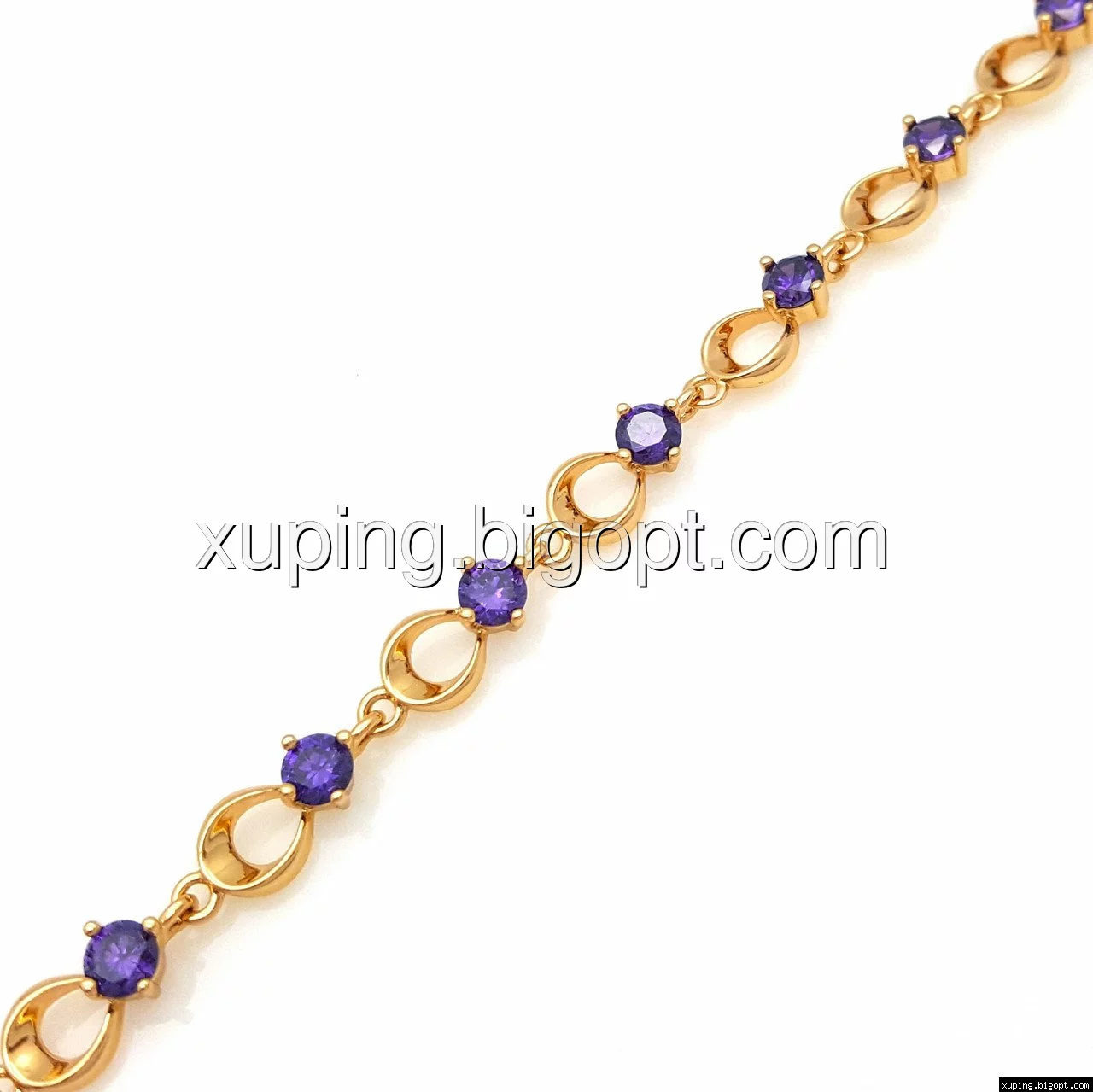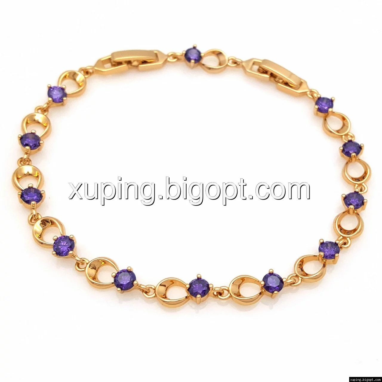 Браслет Бесконечность с фиолетовым цирконием, р.17,5, р.21, позолота Xuping