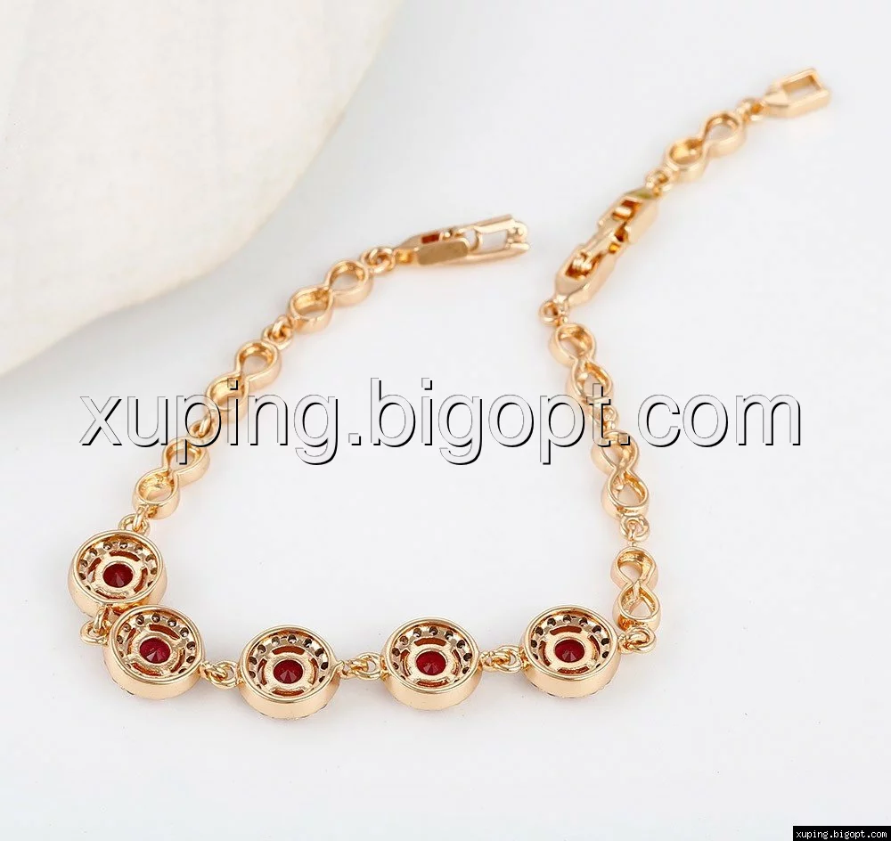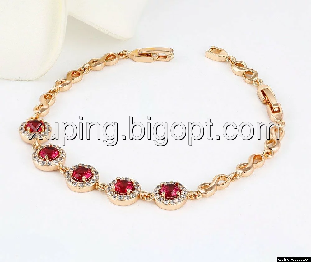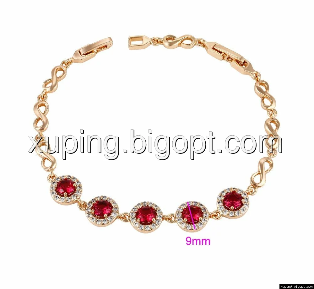 Браслет Бесконечность с цирконием под рубин, позолота, р.16,5, р.20