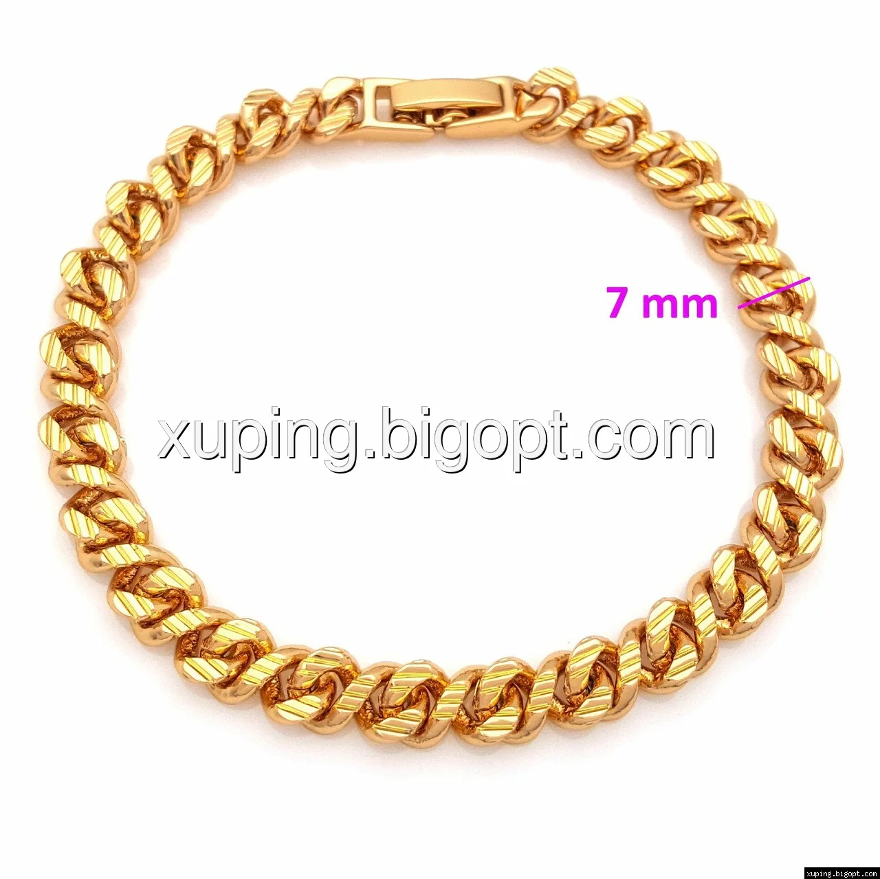 Браслет выполнен из медицинского сплава, который  изготовляется на основе латуни. Сверху бижутерия покрыта позолотой  для того чтобы придать ей насыщенный цвет, яркий блеск и максимальное сходство с золотом. Кроме того, в качестве декора мастера используют цирконий, который крепится при помощи клапанов. Как известно этот камень широко применяется в ювелирном искусстве, так как он обладает восхитительным блеском и прочностью. Данная бижутерия представлена заводом-производителем марки «Xuping» – все изделия оригинальны и имеют одинаково высокое качество.