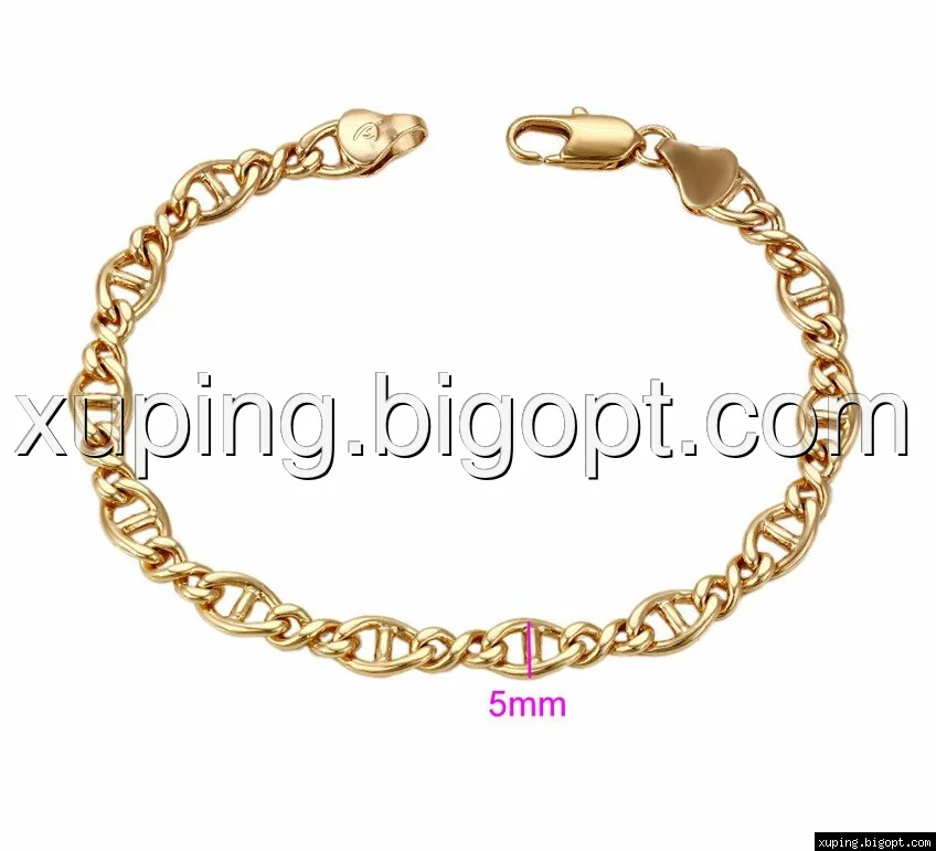Браслет выполнен из медицинского сплава на основе латуни с добавлением легирующих елементов, с целью улучшения каких-либо его свойств, например коррозионной стойкости или прочности. Такой сплав не вызывает аллергии, не вступает в реакцию с потом человека, не меняет свои свойства под воздействием соленой воды и солнца. Поверхность изделия покрыта золотом 18 карата.