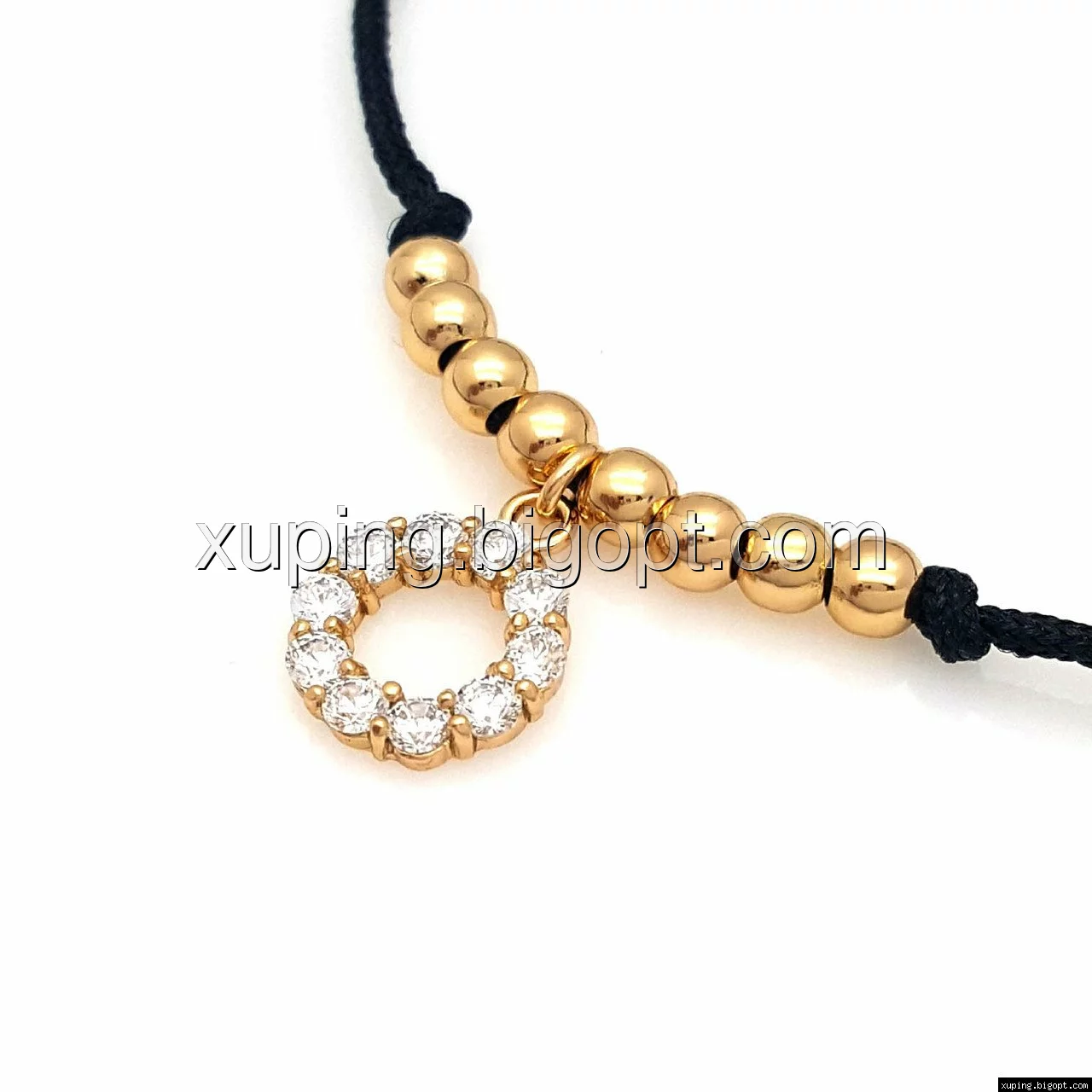 Браслет Черная шелковая ниточка, с шарами со вставкой циркония, позолота