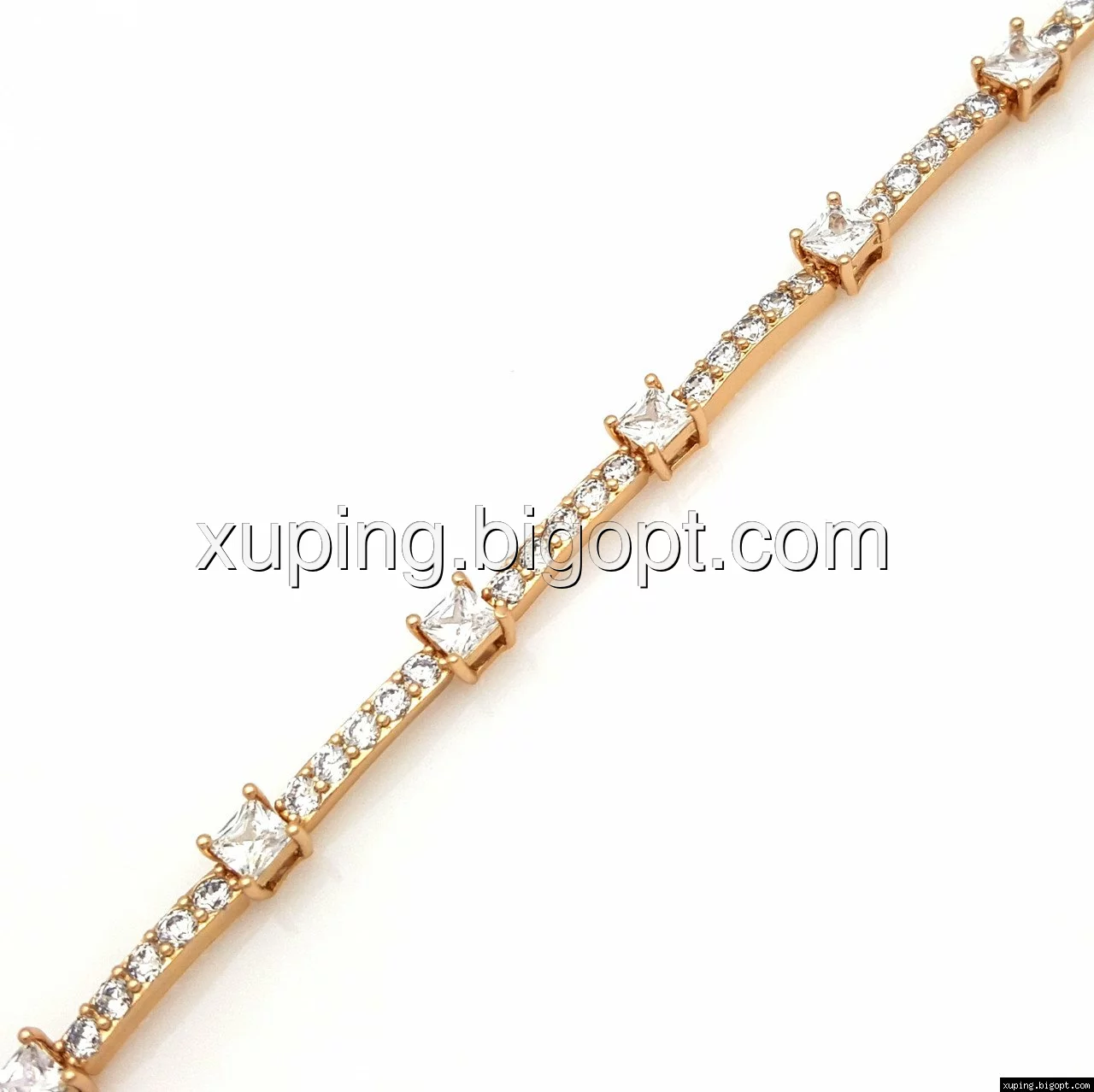Браслет выполнен из медицинского сплава, который  изготовляется на основе латуни. Сверху бижутерия покрыта позолотой  для того чтобы придать ей насыщенный цвет, яркий блеск и максимальное сходство с золотом. Кроме того, в качестве декора мастера используют цирконий, который крепится при помощи клапанов. Как известно этот камень широко применяется в ювелирном искусстве, так как он обладает восхитительным блеском и прочностью. Данная бижутерия представлена заводом-производителем марки «Xuping» – все изделия оригинальны и имеют одинаково высокое качество.