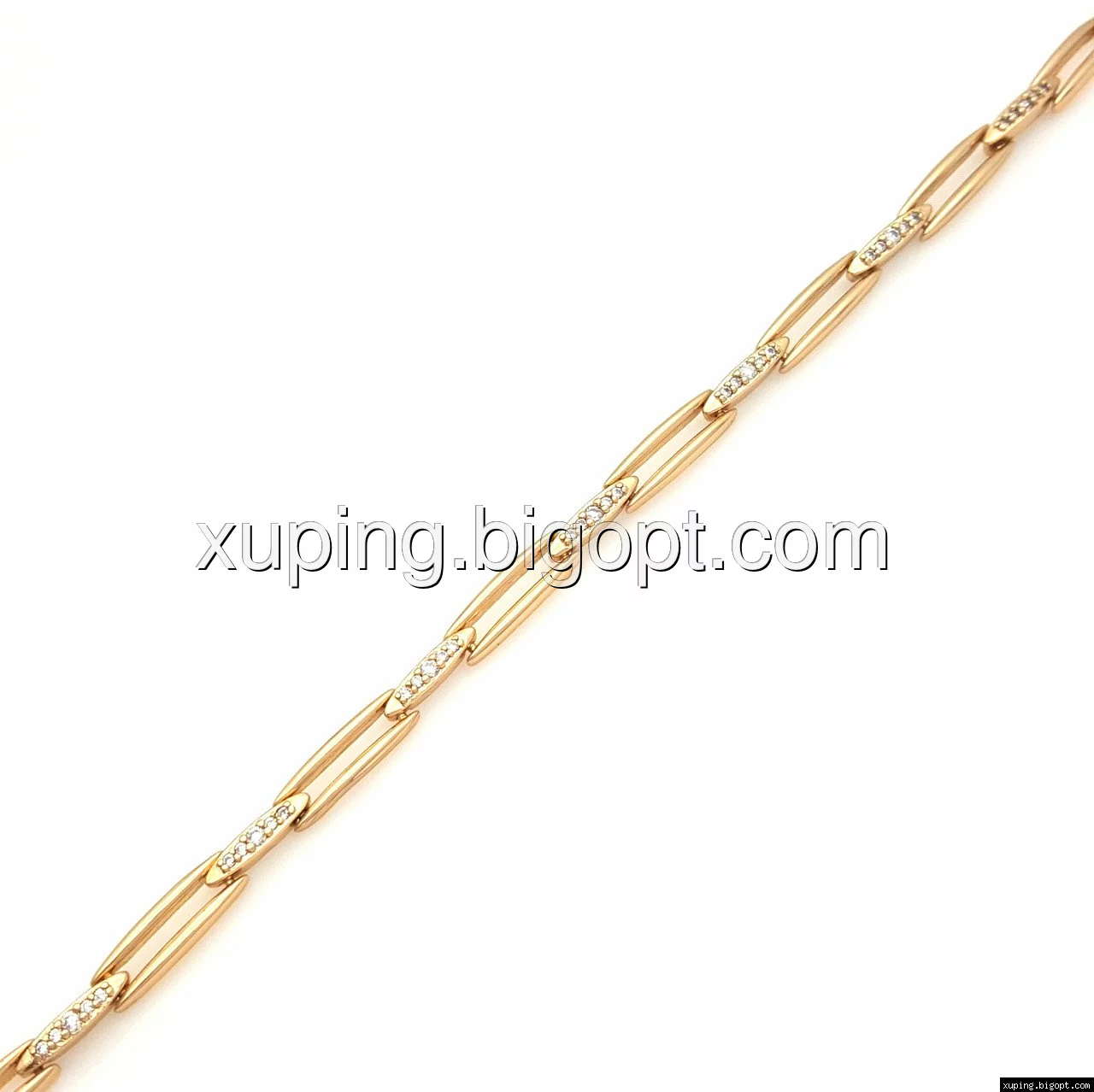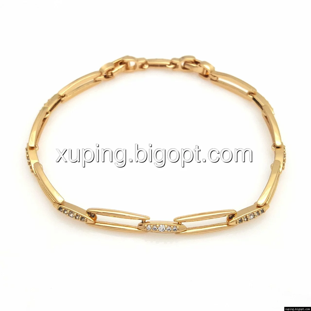 Браслет выполнен из медицинского сплава, который  изготовляется на основе латуни. Сверху бижутерия покрыта позолотой  для того чтобы придать ей насыщенный цвет, яркий блеск и максимальное сходство с золотом. Кроме того, в качестве декора мастера используют цирконий, который крепится при помощи крапанов. Как известно этот камень широко применяется в ювелирном искусстве, так как он обладает восхитительным блеском и прочностью. Данная бижутерия представлена заводом-производителем марки «Xuping» – все изделия оригинальны и имеют одинаково высокое качество.