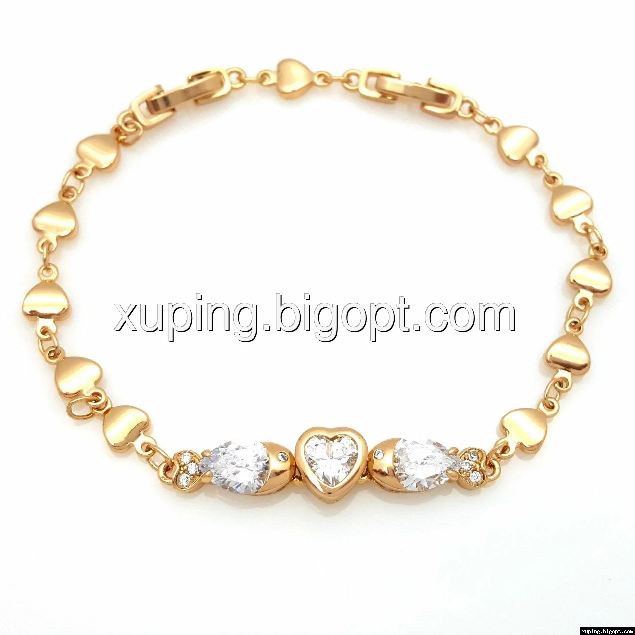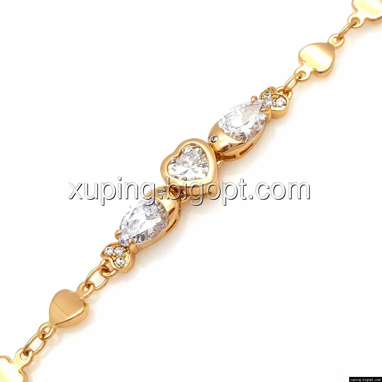 Браслет Хрустальное Сердце с цирконием, р.17, р.19,5, позолота Xuping