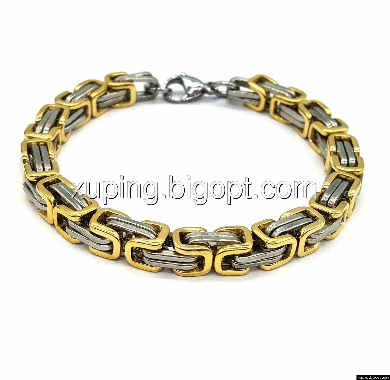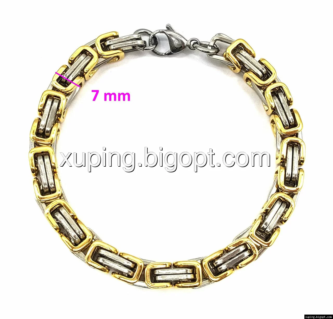 Браслет выполнен с нержавеющей стали с покрытием под золото.