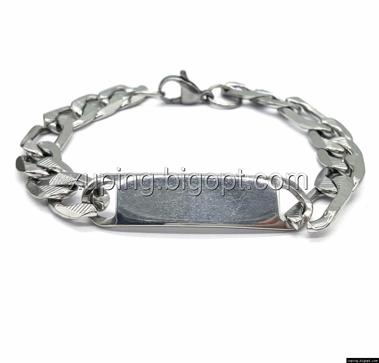 Браслет из нержавейки, Цепочка с резным узором и пластинкой, р.21