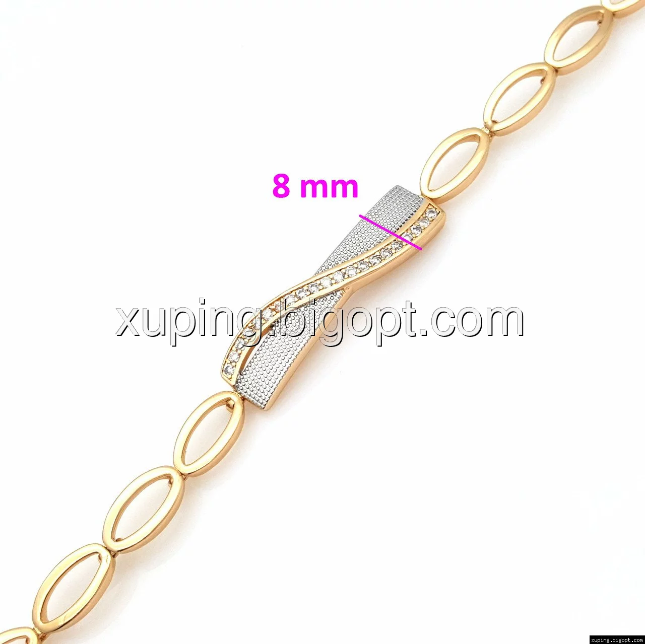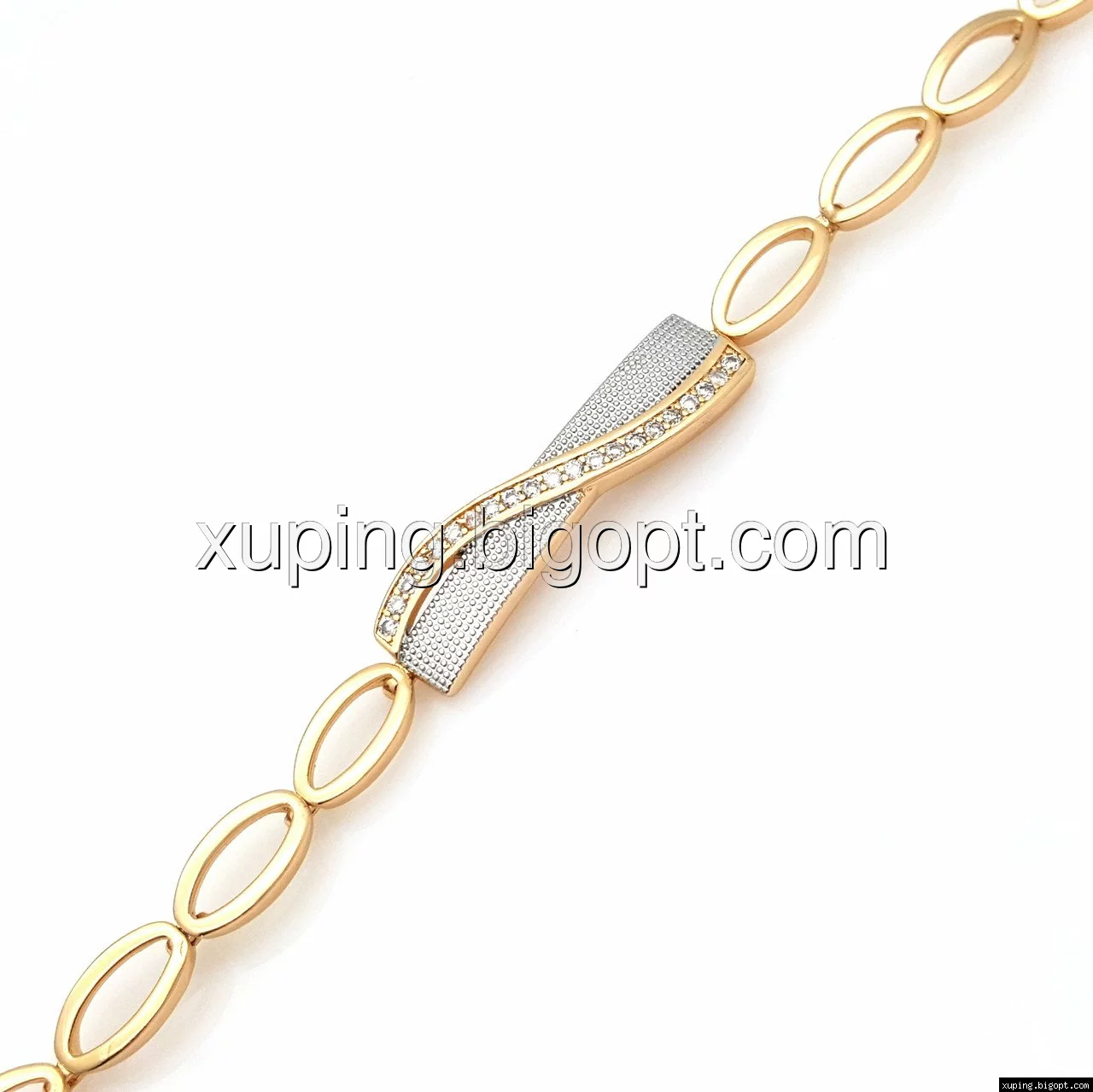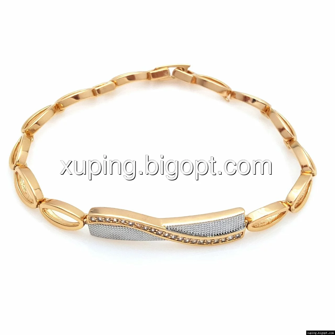 Браслет выполнен из медицинского сплава, который  изготовляется на основе латуни. Сверху бижутерия покрыта позолотой  для того чтобы придать ей насыщенный цвет, яркий блеск и максимальное сходство с золотом. Кроме того, в качестве декора мастера используют цирконий, который крепится при помощи крапанов. Как известно этот камень широко применяется в ювелирном искусстве, так как он обладает восхитительным блеском и прочностью. Данная бижутерия представлена заводом-производителем марки «Xuping» – все изделия оригинальны и имеют одинаково высокое качество.