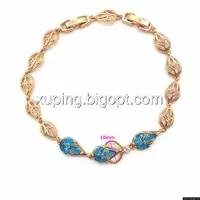 Браслет выполнен из медицинского сплава, который  изготовляется на основе латуни. Сверху бижутерия покрыта позолотой  для того чтобы придать ей насыщенный цвет, яркий блеск и максимальное сходство с золотом. Кроме того, в качестве декора мастера используют цирконий, который крепится при помощи крапанов. Как известно этот камень широко применяется в ювелирном искусстве, так как он обладает восхитительным блеском и прочностью. Данная бижутерия представлена заводом-производителем марки «Xuping» – все изделия оригинальны и имеют одинаково высокое качество.