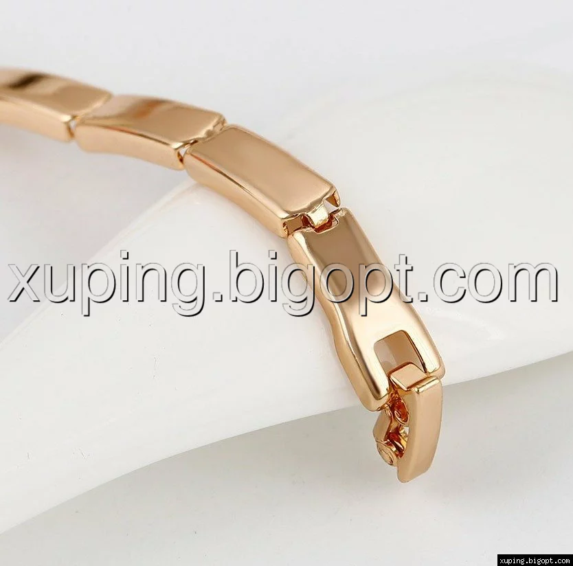 Браслет выполнен из медицинского сплава на основе латуни с добавлением легирующих елементов, с целью улучшения каких-либо его свойств, например коррозионной стойкости или прочности. Такой сплав не вызывает аллергии, не вступает в реакцию с потом человека, не меняет свои свойства под воздействием соленой воды и солнца. Поверхность изделия покрыта золотом 18 карата.