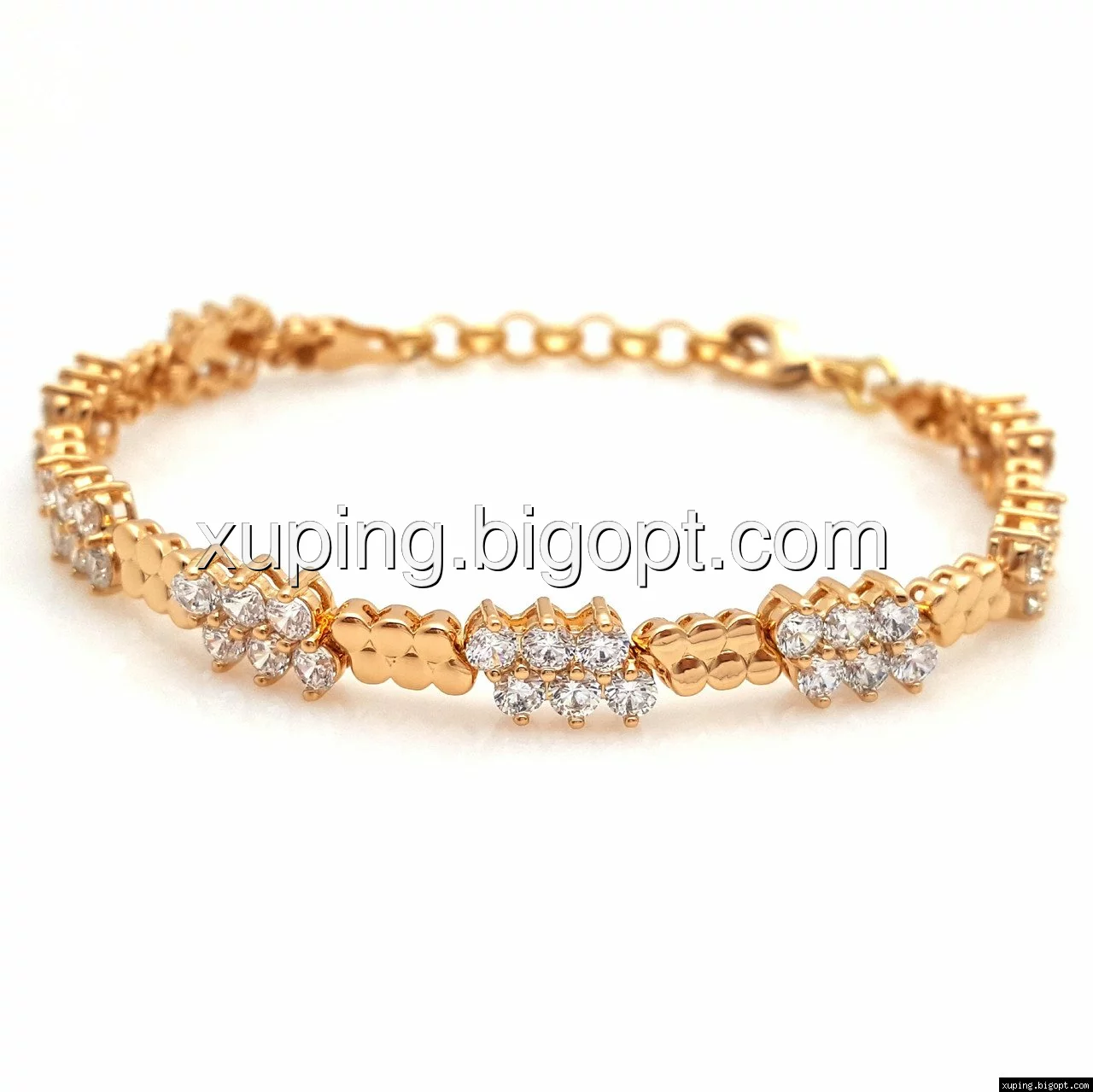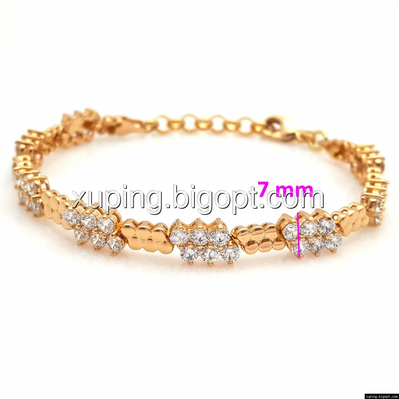 Браслет выполнен из медицинского сплава, который  изготовляется на основе латуни. Сверху бижутерия покрыта позолотой  для того чтобы придать ей насыщенный цвет, яркий блеск и максимальное сходство с золотом. Кроме того, в качестве декора мастера используют цирконий, который крепится при помощи клапанов. Как известно этот камень широко применяется в ювелирном искусстве, так как он обладает восхитительным блеском и прочностью. Данная бижутерия представлена заводом-производителем марки «Xuping» – все изделия оригинальны и имеют одинаково высокое качество.