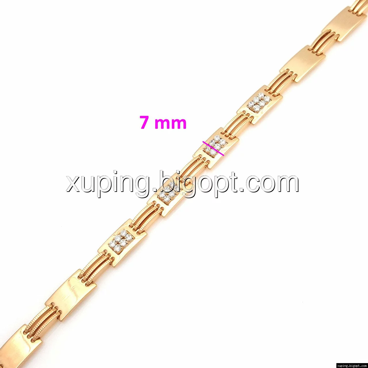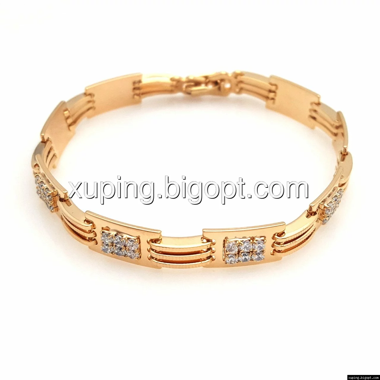 Браслет выполнен из медицинского сплава, который  изготовляется на основе латуни. Сверху бижутерия покрыта позолотой  для того чтобы придать ей насыщенный цвет, яркий блеск и максимальное сходство с золотом. Кроме того, в качестве декора мастера используют цирконий, который крепится при помощи крапанов. Как известно этот камень широко применяется в ювелирном искусстве, так как он обладает восхитительным блеском и прочностью. Данная бижутерия представлена заводом-производителем марки «Xuping» – все изделия оригинальны и имеют одинаково высокое качество.