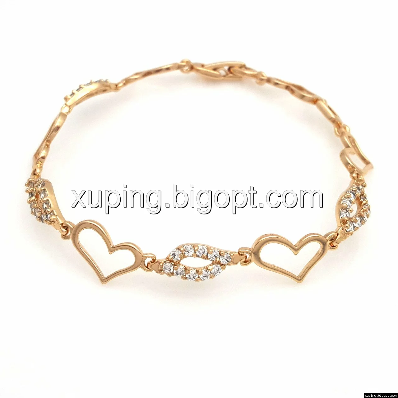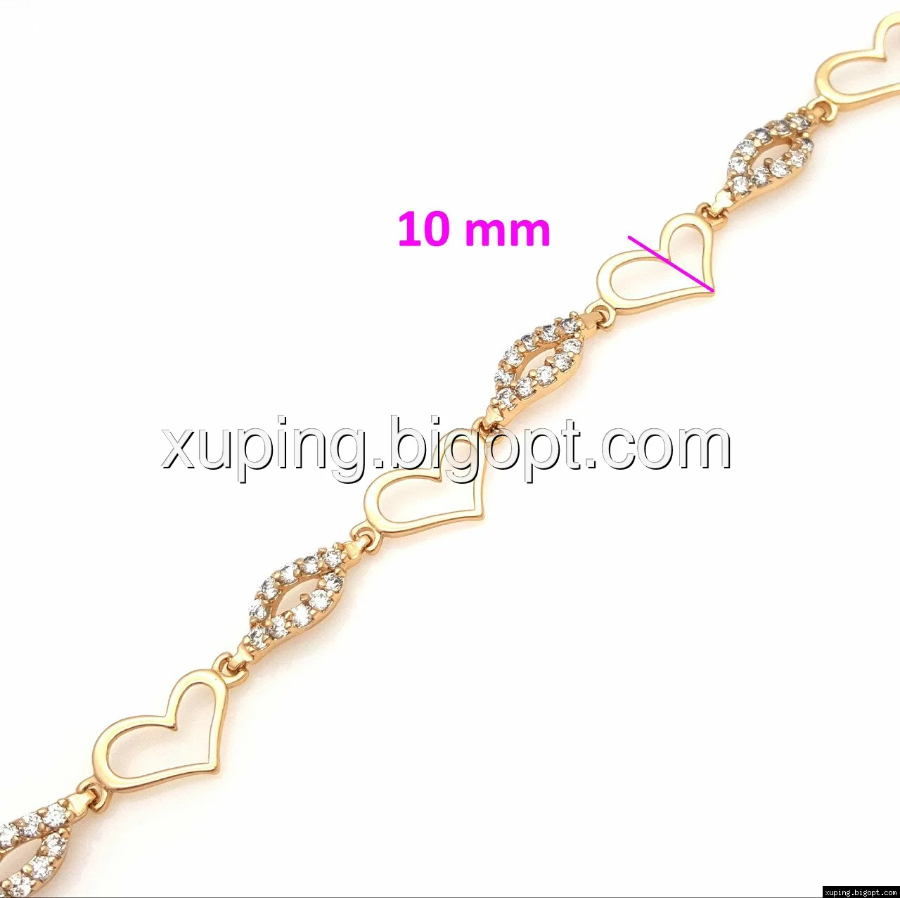 Браслет выполнен из медицинского сплава, который  изготовляется на основе латуни. Сверху бижутерия покрыта позолотой  для того чтобы придать ей насыщенный цвет, яркий блеск и максимальное сходство с золотом. Кроме того, в качестве декора мастера используют цирконий, который крепится при помощи крапанов. Как известно этот камень широко применяется в ювелирном искусстве, так как он обладает восхитительным блеском и прочностью. Данная бижутерия представлена заводом-производителем марки «Xuping» – все изделия оригинальны и имеют одинаково высокое качество.