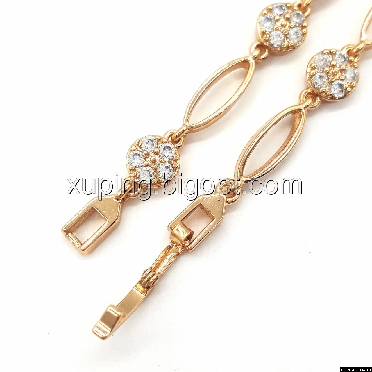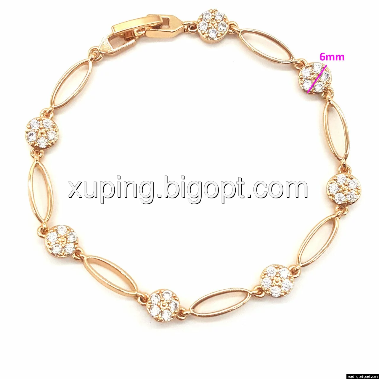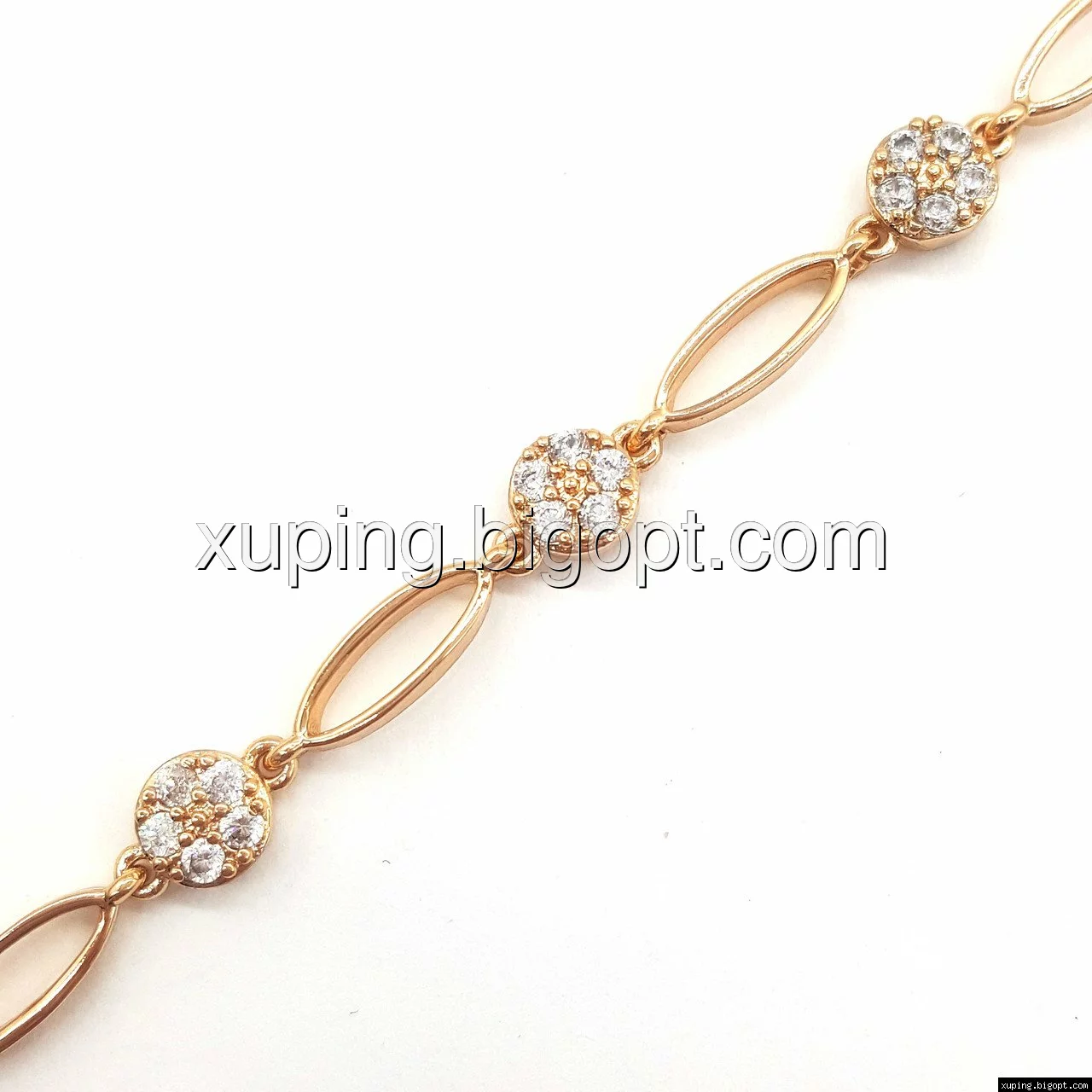 Браслет выполнен из медицинского сплава, который  изготовляется на основе латуни. Сверху бижутерия покрыта позолотой  для того чтобы придать ей насыщенный цвет, яркий блеск и максимальное сходство с золотом. Кроме того, в качестве декора мастера используют цирконий, который крепится при помощи крапанов. Как известно этот камень широко применяется в ювелирном искусстве, так как он обладает восхитительным блеском и прочностью. Данная бижутерия представлена заводом-производителем марки «Xuping» – все изделия оригинальны и имеют одинаково высокое качество.
