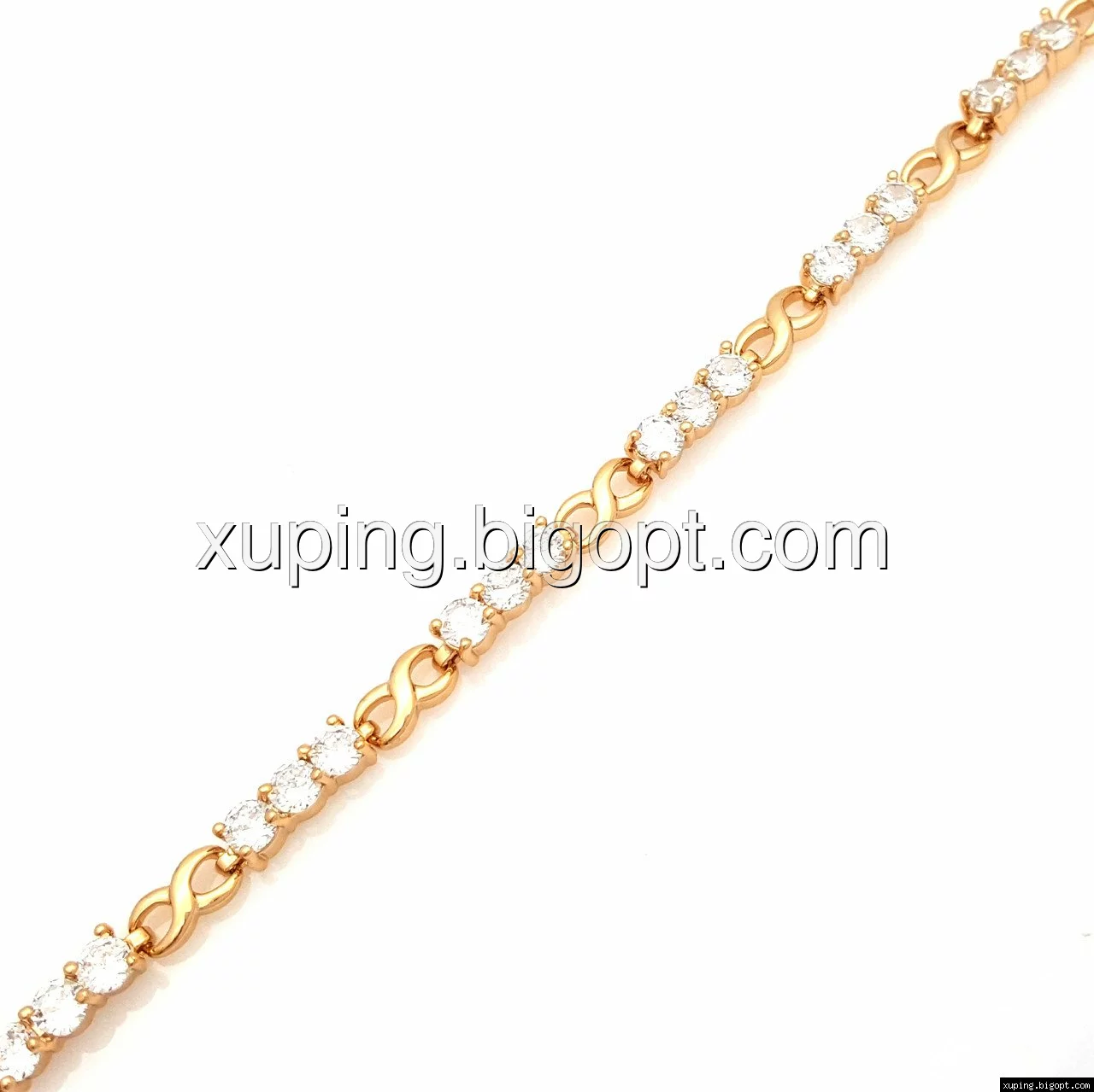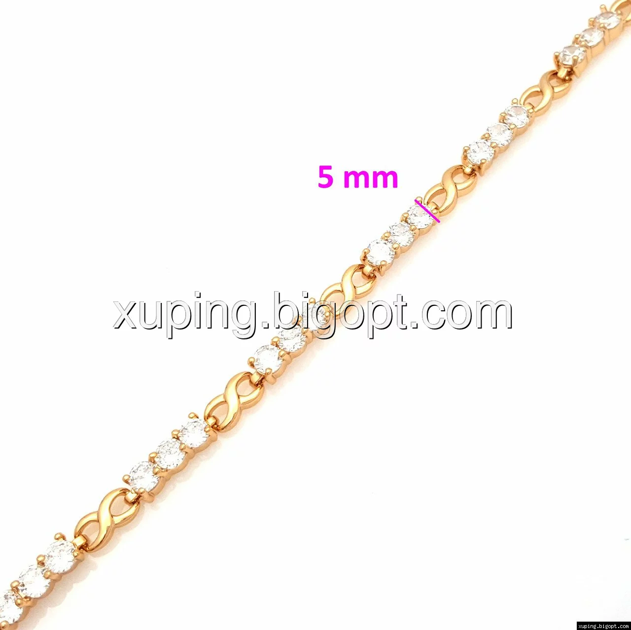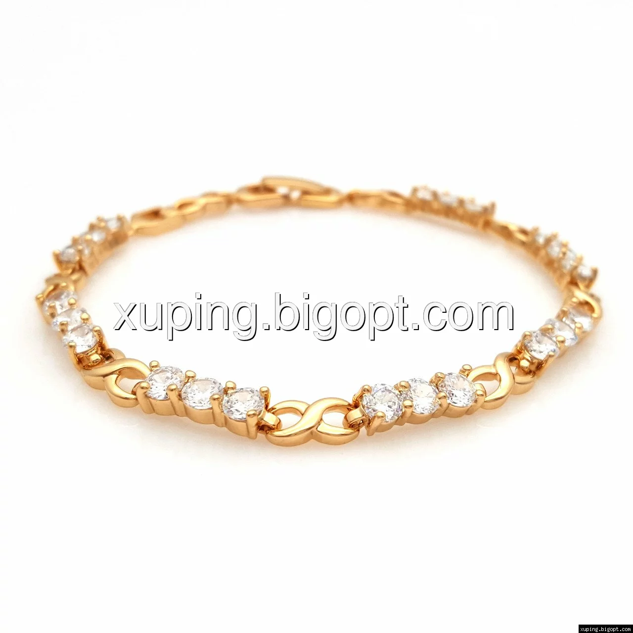 Браслет выполнен из медицинского сплава, который  изготовляется на основе латуни. Сверху бижутерия покрыта позолотой  для того чтобы придать ей насыщенный цвет, яркий блеск и максимальное сходство с золотом. Кроме того, в качестве декора мастера используют цирконий, который крепится при помощи крапанов. Как известно этот камень широко применяется в ювелирном искусстве, так как он обладает восхитительным блеском и прочностью. Данная бижутерия представлена заводом-производителем марки «Xuping» – все изделия оригинальны и имеют одинаково высокое качество.