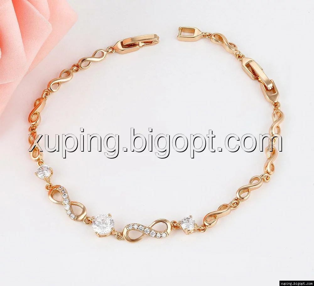 Браслет позолоченный, Бесконечность с россыпью циркония, р.17,5, р.20,5