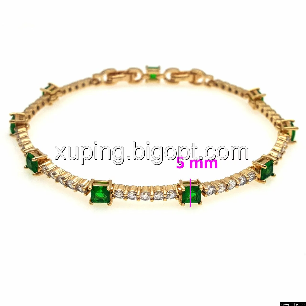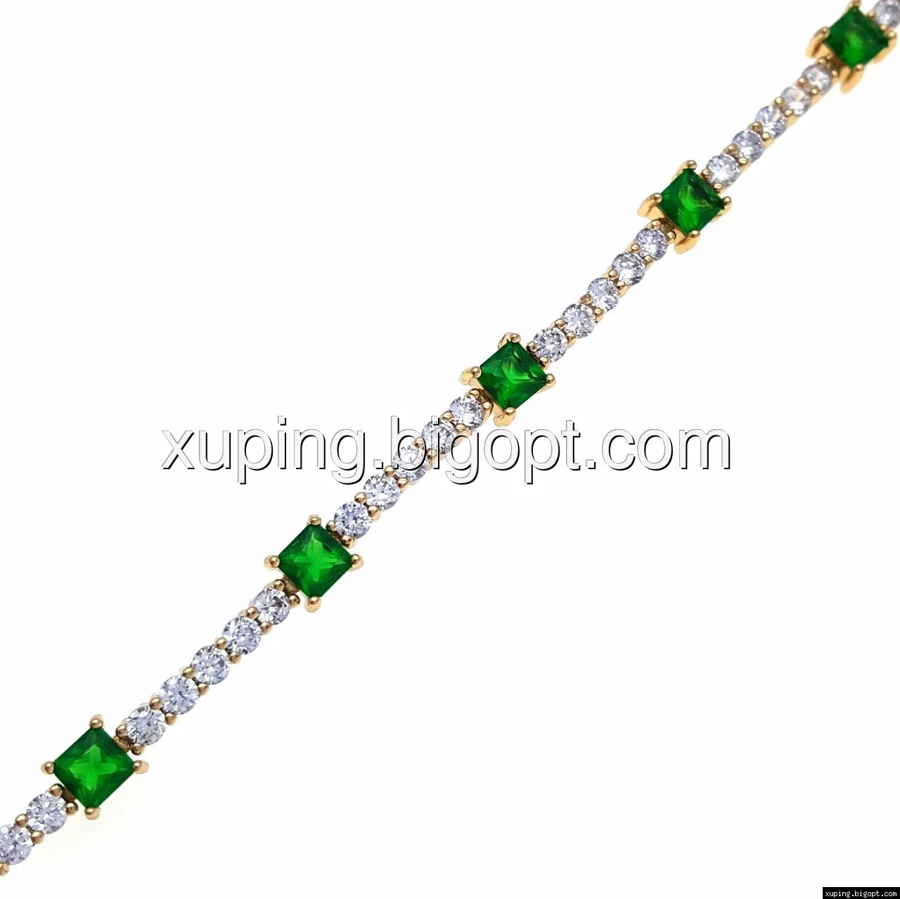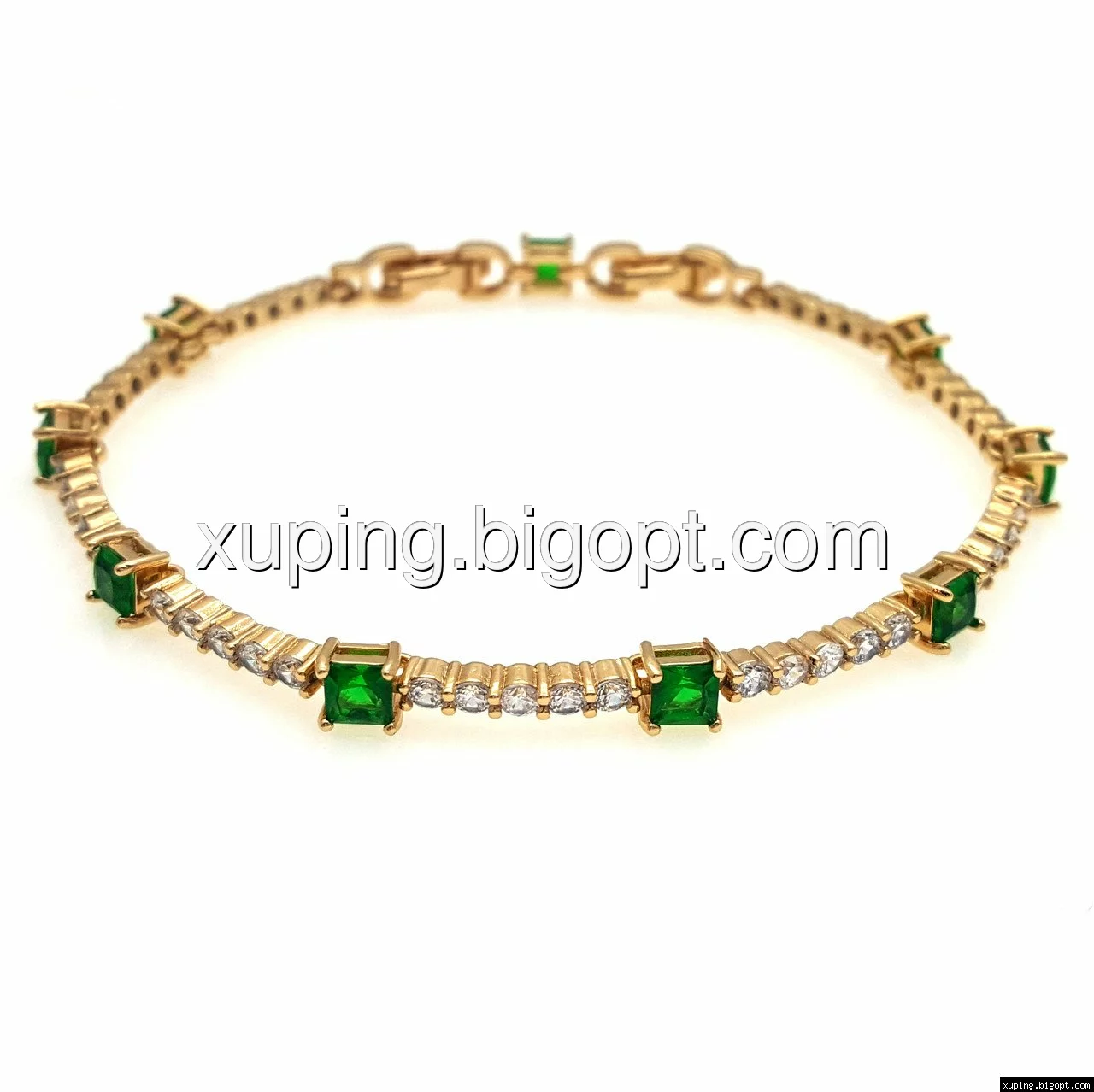 Браслет позолоченный, Дорожка с зеленым цирконием, р.18,5, р.20,5