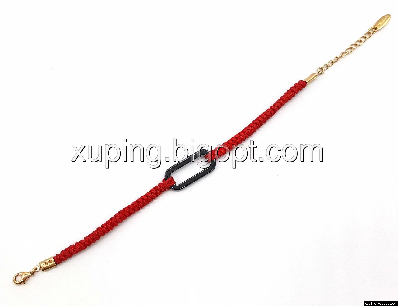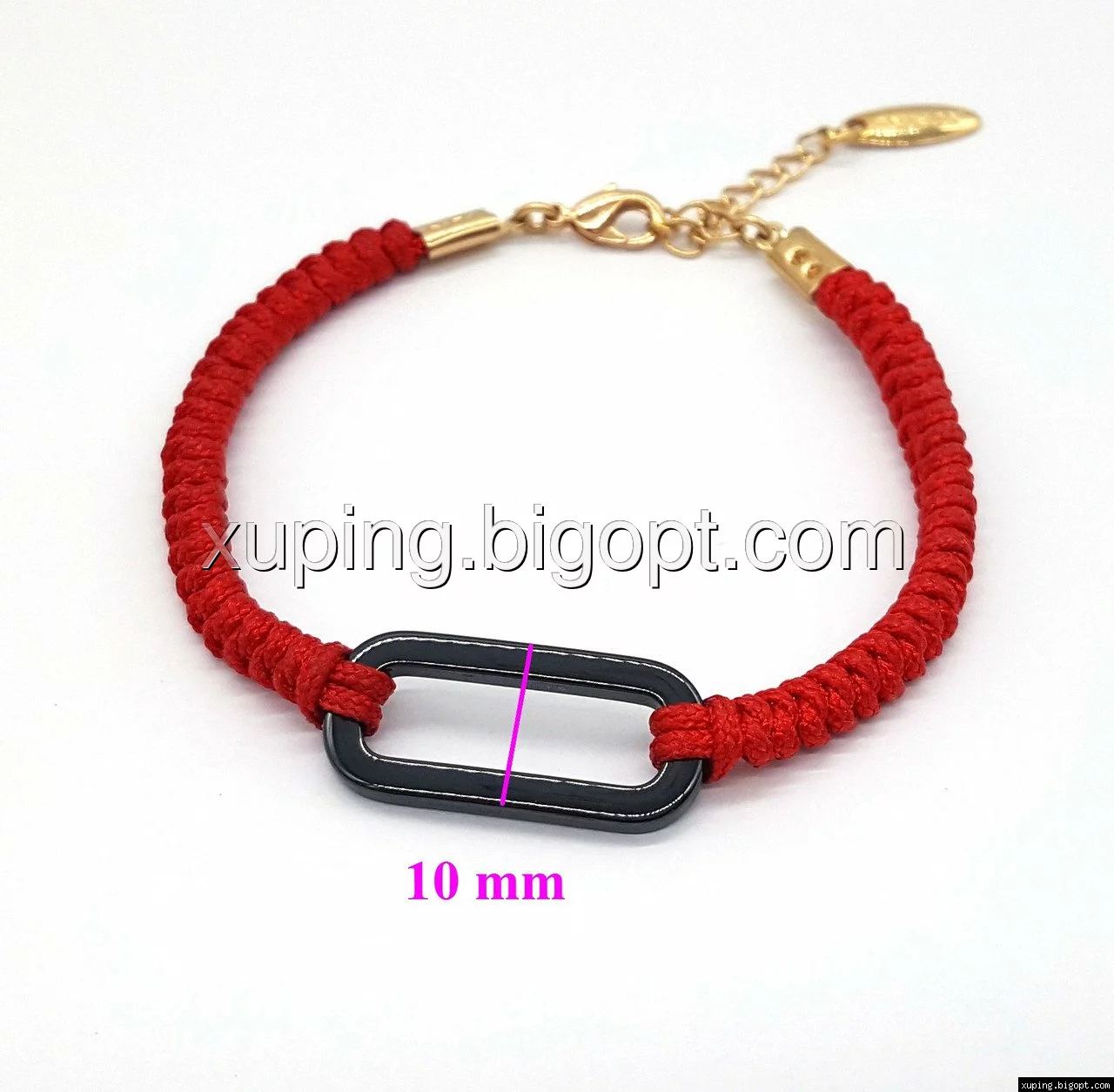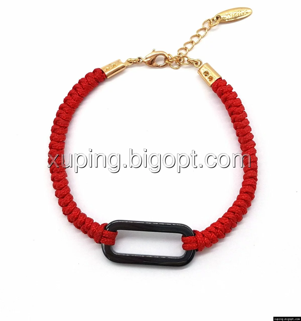 Браслет позолоченный, Красный шнурок, с керамичной вставкой, р.17-20