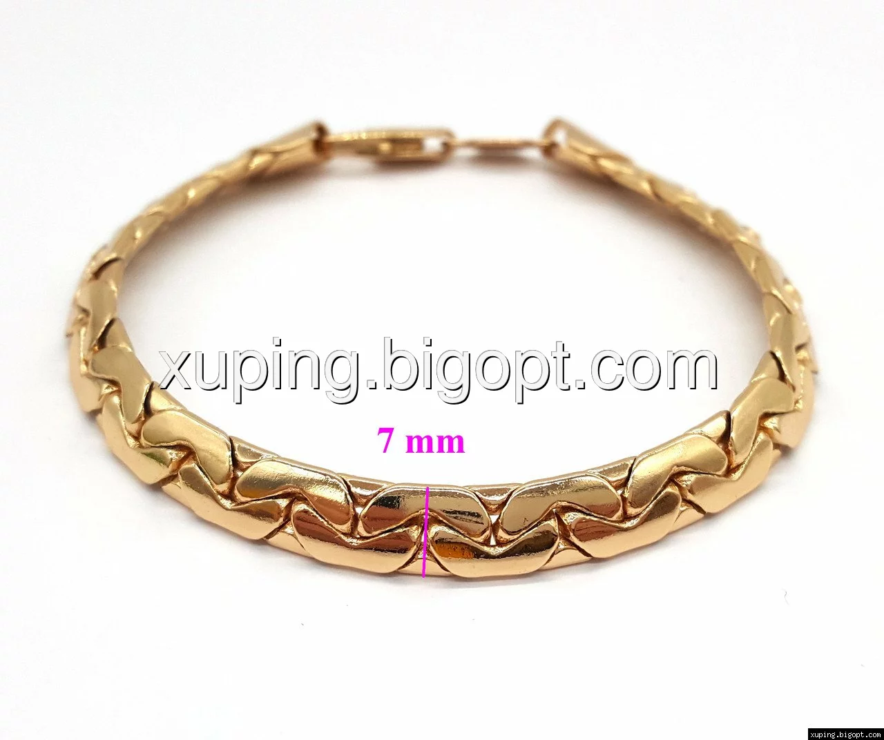 Браслет выполнен из медицинского сплава, который  изготовляется на основе латуни. Сверху бижутерия покрыта позолотой  для того чтобы придать ей насыщенный цвет, яркий блеск и максимальное сходство с золотом. Кроме того, в качестве декора мастера используют цирконий, который крепится при помощи крапанов. Как известно этот камень широко применяется в ювелирном искусстве, так как он обладает восхитительным блеском и прочностью. Данная бижутерия представлена заводом-производителем марки «Xuping» – все изделия оригинальны и имеют одинаково высокое качество.