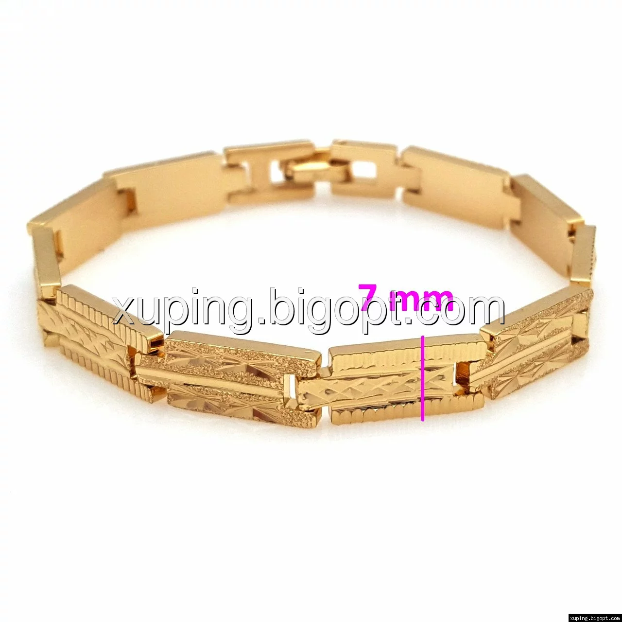 Браслет выполнен из медицинского сплава, который  изготовляется на основе латуни. Сверху бижутерия покрыта позолотой  для того чтобы придать ей насыщенный цвет, яркий блеск и максимальное сходство с золотом. Кроме того, в качестве декора мастера используют цирконий, который крепится при помощи клапанов. Как известно этот камень широко применяется в ювелирном искусстве, так как он обладает восхитительным блеском и прочностью. Данная бижутерия представлена заводом-производителем марки «Xuping» – все изделия оригинальны и имеют одинаково высокое качество.