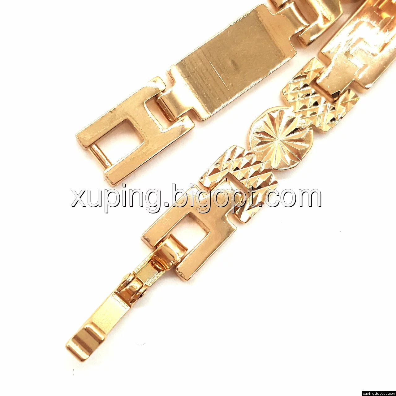Браслет выполнен из медицинского сплава, который  изготовляется на основе латуни. Сверху бижутерия покрыта позолотой  для того чтобы придать ей насыщенный цвет, яркий блеск и максимальное сходство с золотом. Кроме того, в качестве декора мастера используют цирконий, который крепится при помощи крапанов. Как известно этот камень широко применяется в ювелирном искусстве, так как он обладает восхитительным блеском и прочностью. Данная бижутерия представлена заводом-производителем марки «Xuping» – все изделия оригинальны и имеют одинаково высокое качество.