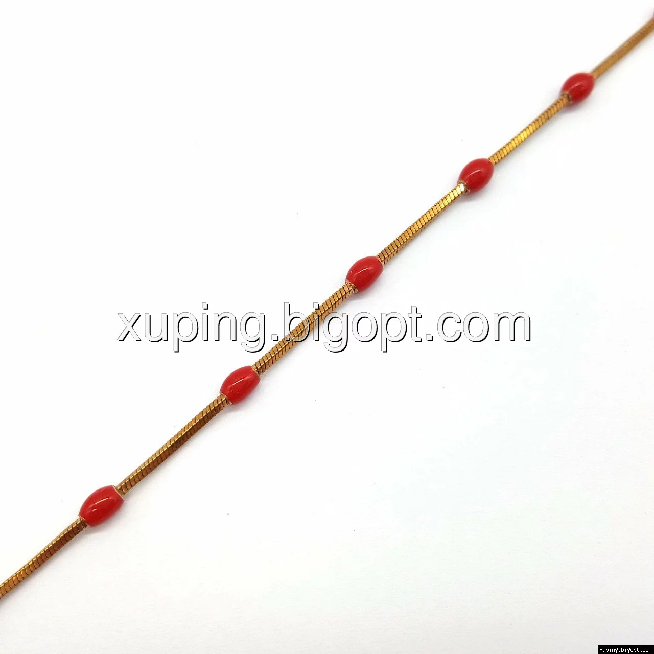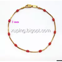 Браслет позолоченный, плетение Снейк, с красной эмалью, р.20