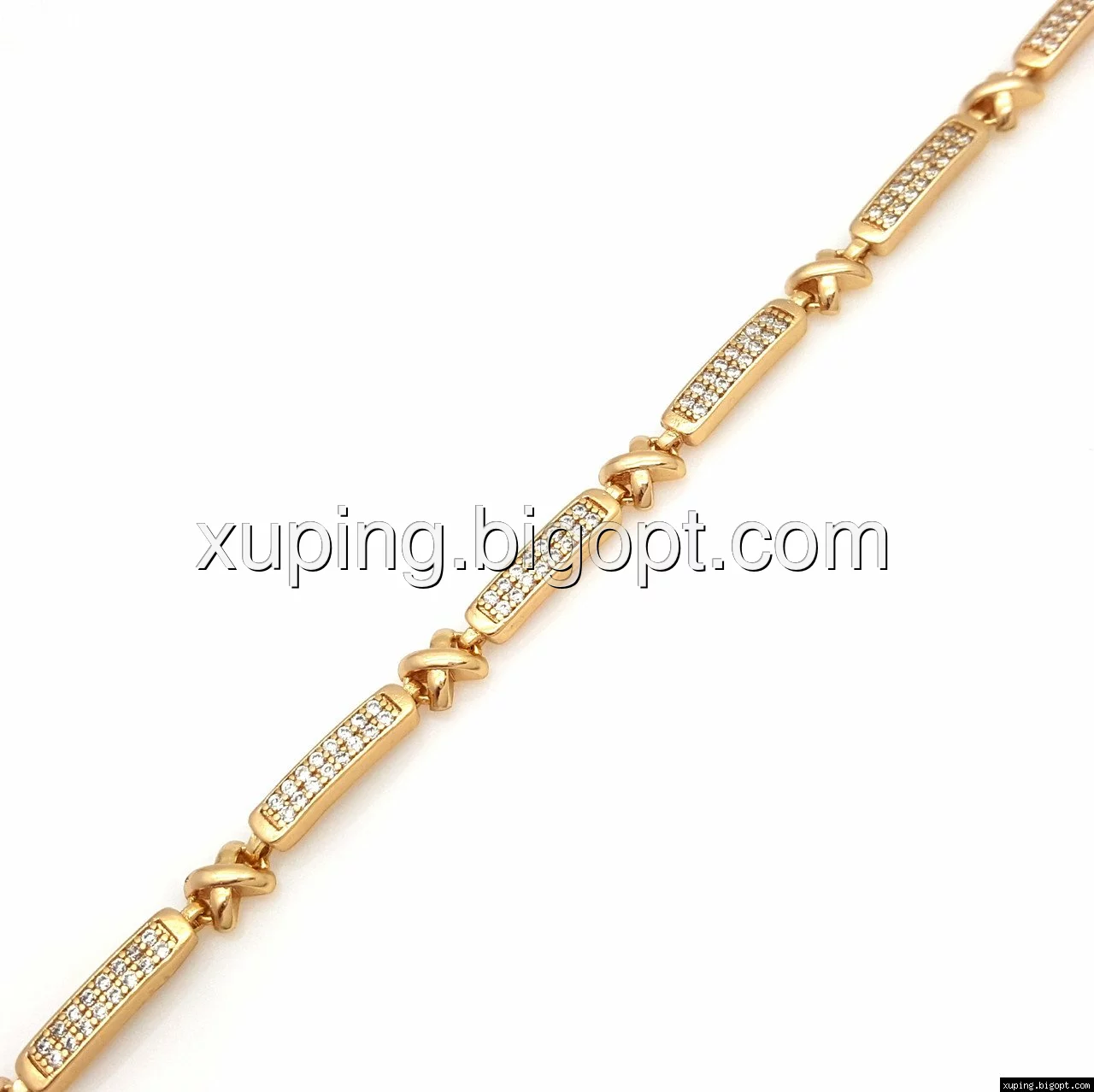 Браслет выполнен из медицинского сплава, который  изготовляется на основе латуни. Сверху бижутерия покрыта позолотой  для того чтобы придать ей насыщенный цвет, яркий блеск и максимальное сходство с золотом. Кроме того, в качестве декора мастера используют цирконий, который крепится при помощи крапанов. Как известно этот камень широко применяется в ювелирном искусстве, так как он обладает восхитительным блеском и прочностью. Данная бижутерия представлена заводом-производителем марки «Xuping» – все изделия оригинальны и имеют одинаково высокое качество.