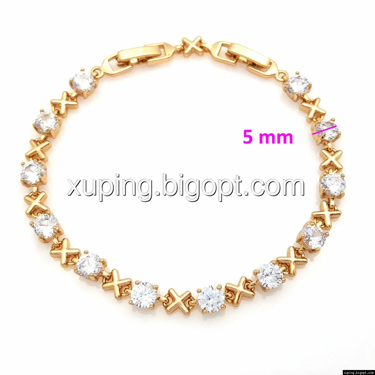 Браслет выполнен из медицинского сплава, который  изготовляется на основе латуни. Сверху бижутерия покрыта позолотой  для того чтобы придать ей насыщенный цвет, яркий блеск и максимальное сходство с золотом. Кроме того, в качестве декора мастера используют цирконий, который крепится при помощи крапанов. Как известно этот камень широко применяется в ювелирном искусстве, так как он обладает восхитительным блеском и прочностью. Данная бижутерия представлена заводом-производителем марки «Xuping» – все изделия оригинальны и имеют одинаково высокое качество.