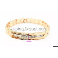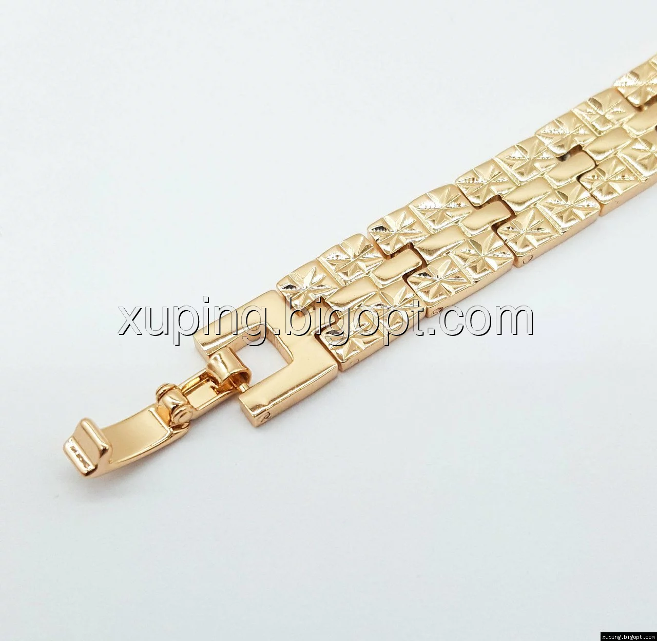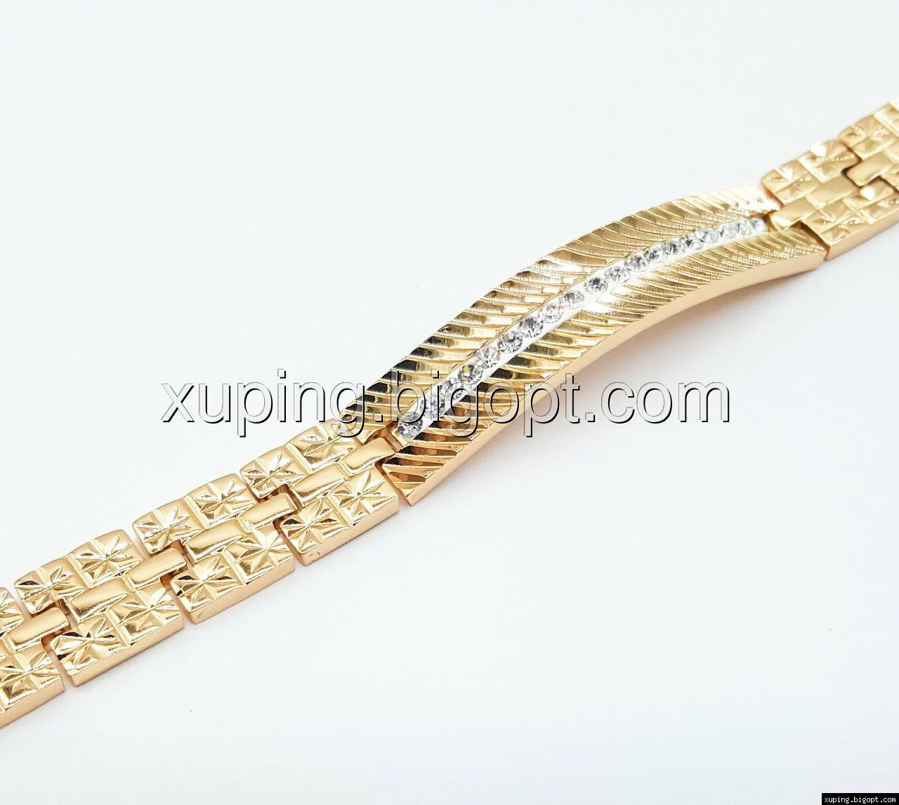 Браслет выполнен из медицинского сплава, который  изготовляется на основе латуни. Сверху бижутерия покрыта позолотой  для того чтобы придать ей насыщенный цвет, яркий блеск и максимальное сходство с золотом. Кроме того, в качестве декора мастера используют цирконий, который крепится при помощи крапанов. Как известно этот камень широко применяется в ювелирном искусстве, так как он обладает восхитительным блеском и прочностью. Данная бижутерия представлена заводом-производителем марки «Xuping» – все изделия оригинальны и имеют одинаково высокое качество.