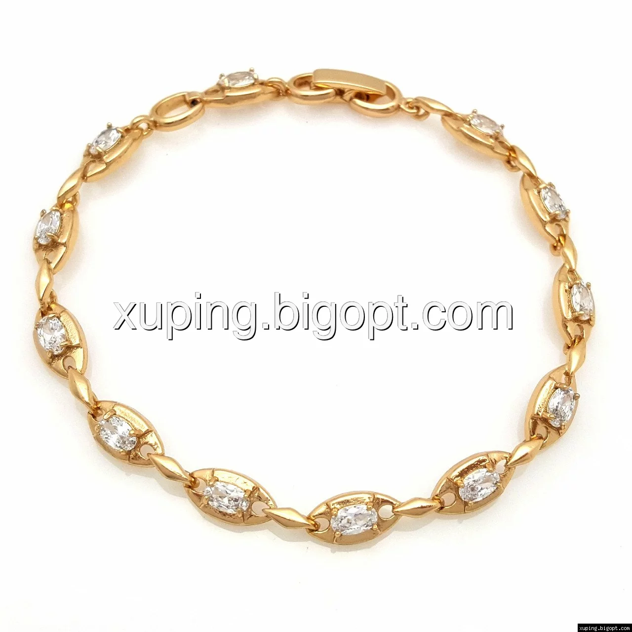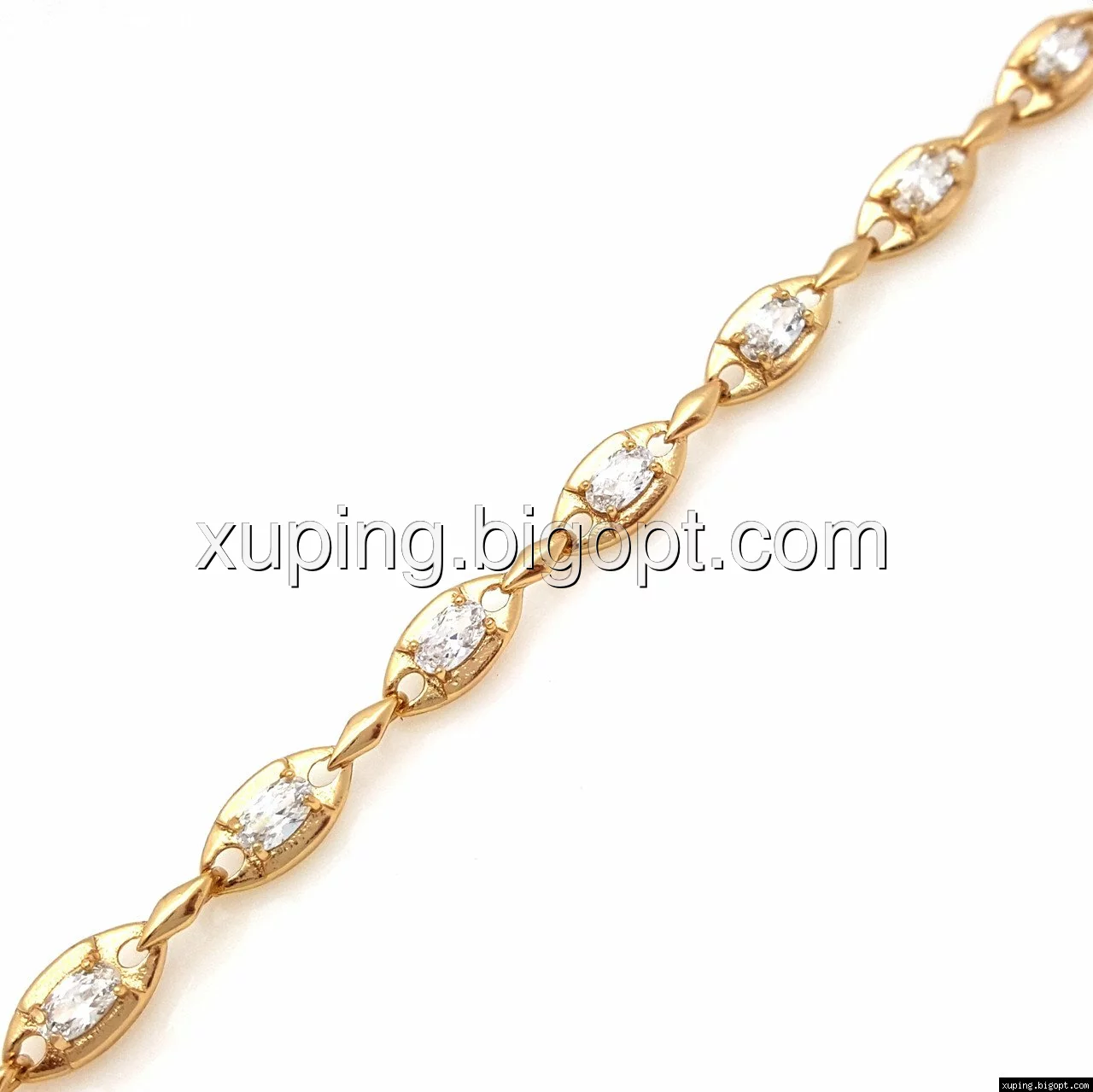 Браслет выполнен из медицинского сплава, который  изготовляется на основе латуни. Сверху бижутерия покрыта позолотой  для того чтобы придать ей насыщенный цвет, яркий блеск и максимальное сходство с золотом. Кроме того, в качестве декора мастера используют цирконий, который крепится при помощи клапанов. Как известно этот камень широко применяется в ювелирном искусстве, так как он обладает восхитительным блеском и прочностью. Данная бижутерия представлена заводом-производителем марки «Xuping» – все изделия оригинальны и имеют одинаково высокое качество.