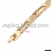 Браслет выполнен из медицинского сплава, который  изготовляется на основе латуни. Сверху бижутерия покрыта позолотой  для того чтобы придать ей насыщенный цвет, яркий блеск и максимальное сходство с золотом. Кроме того, в качестве декора мастера используют цирконий, который крепится при помощи крапанов. Как известно этот камень широко применяется в ювелирном искусстве, так как он обладает восхитительным блеском и прочностью. Данная бижутерия представлена заводом-производителем марки «Xuping» – все изделия оригинальны и имеют одинаково высокое качество.