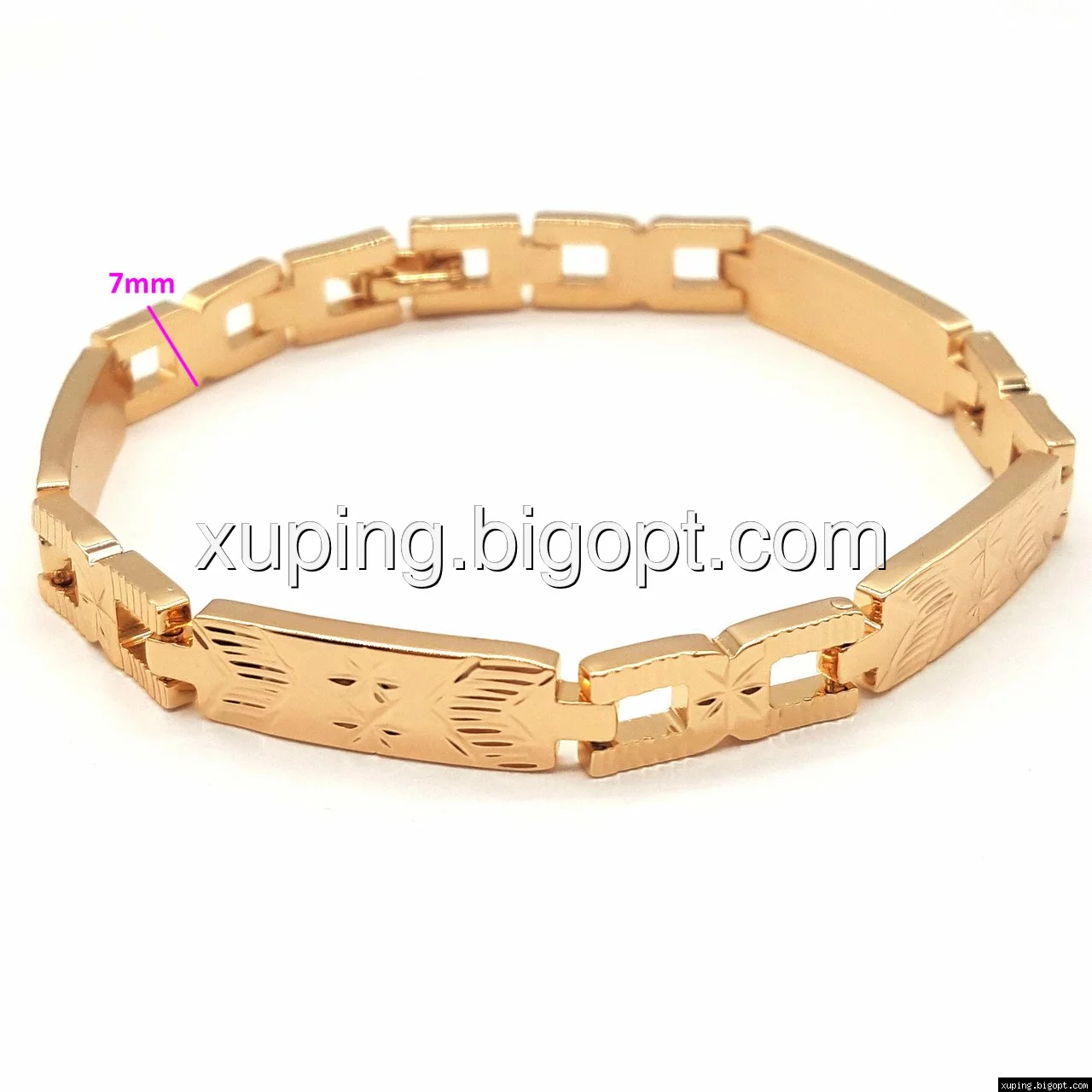 Браслет выполнен из медицинского сплава, который  изготовляется на основе латуни. Сверху бижутерия покрыта позолотой  для того чтобы придать ей насыщенный цвет, яркий блеск и максимальное сходство с золотом. Кроме того, в качестве декора мастера используют цирконий, который крепится при помощи крапанов. Как известно этот камень широко применяется в ювелирном искусстве, так как он обладает восхитительным блеском и прочностью. Данная бижутерия представлена заводом-производителем марки «Xuping» – все изделия оригинальны и имеют одинаково высокое качество.