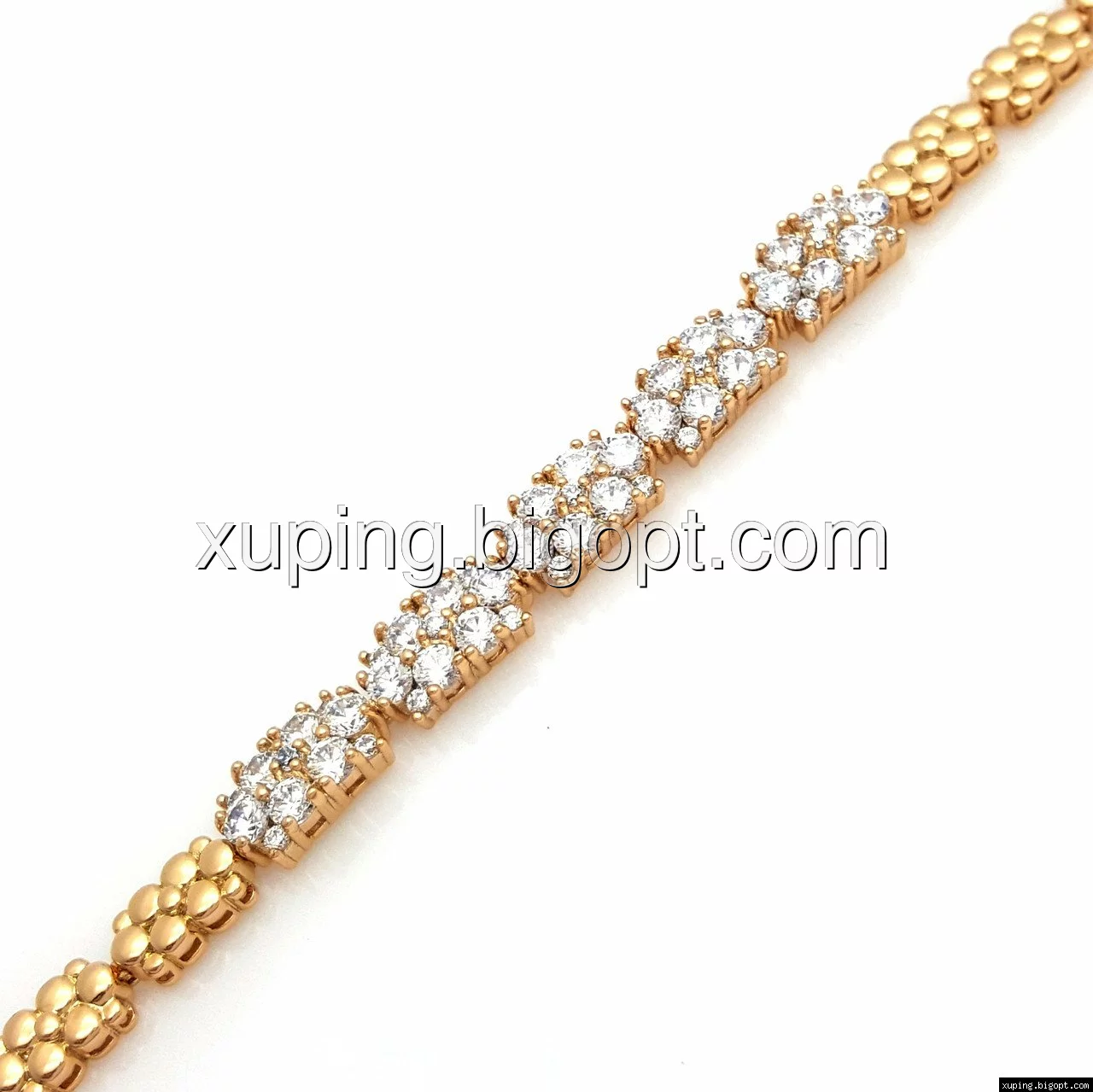 Браслет выполнен из медицинского сплава, который  изготовляется на основе латуни. Сверху бижутерия покрыта позолотой  для того чтобы придать ей насыщенный цвет, яркий блеск и максимальное сходство с золотом. Кроме того, в качестве декора мастера используют цирконий, который крепится при помощи клапанов. Как известно этот камень широко применяется в ювелирном искусстве, так как он обладает восхитительным блеском и прочностью. Данная бижутерия представлена заводом-производителем марки «Xuping» – все изделия оригинальны и имеют одинаково высокое качество.