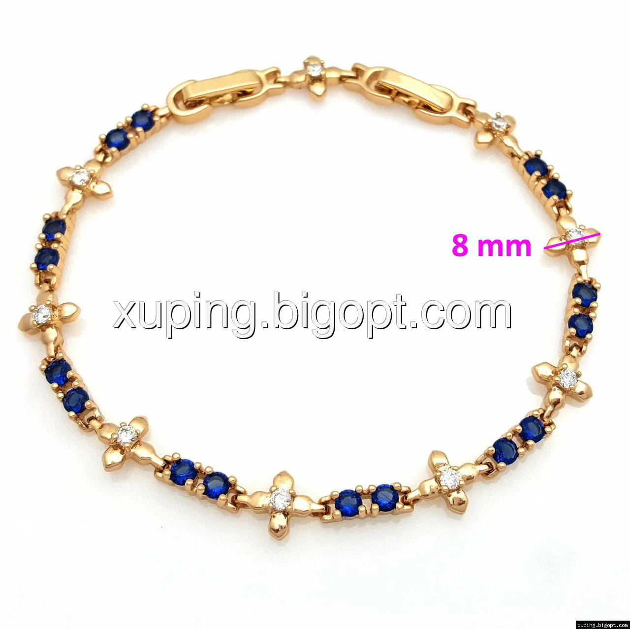 Браслет выполнен из медицинского сплава, который изготовляется на основе латуни. Сверху бижутерия покрыта позолотой для того чтобы придать ей насыщенный цвет, яркий блеск и максимальное сходство с золотом. Кроме того, в качестве декора мастера используют цирконий, который крепится при помощи клапанов. Как известно этот камень широко применяется в ювелирном искусстве, так как он обладает восхитительным блеском и прочностью. Данная бижутерия представлена заводом-производителем марки «Xuping» – все изделия оригинальны и имеют одинаково высокое качество.