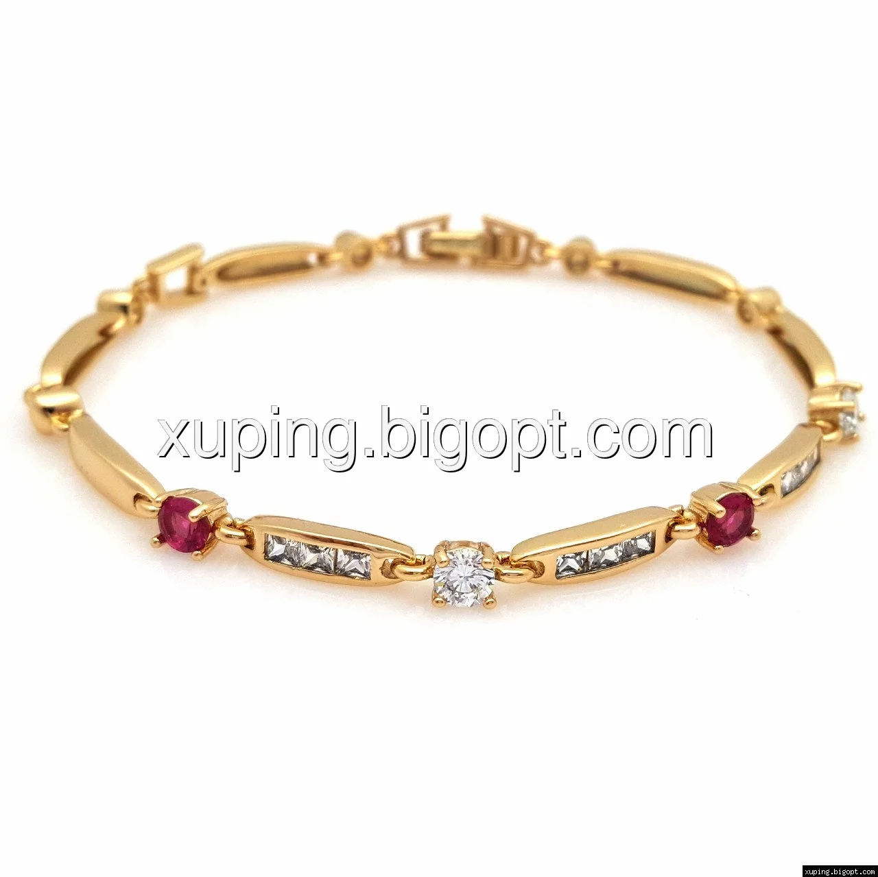 Браслет выполнен из медицинского сплава, который  изготовляется на основе латуни. Сверху бижутерия покрыта позолотой  для того чтобы придать ей насыщенный цвет, яркий блеск и максимальное сходство с золотом. Кроме того, в качестве декора мастера используют цирконий, который крепится при помощи клапанов. Как известно этот камень широко применяется в ювелирном искусстве, так как он обладает восхитительным блеском и прочностью. Данная бижутерия представлена заводом-производителем марки «Xuping» – все изделия оригинальны и имеют одинаково высокое качество.