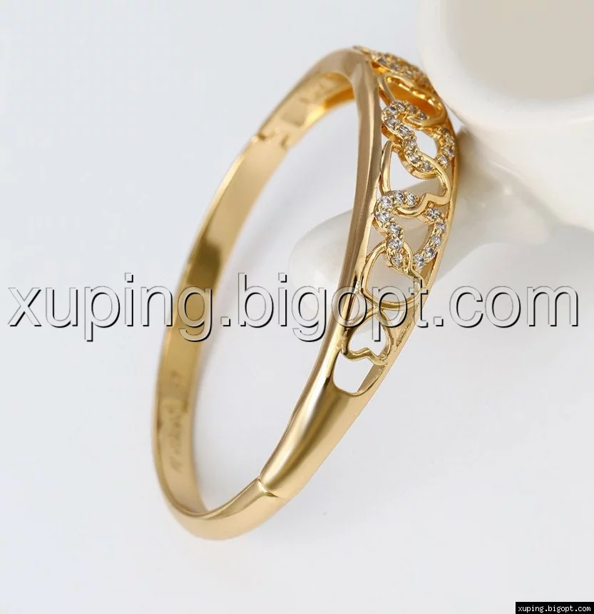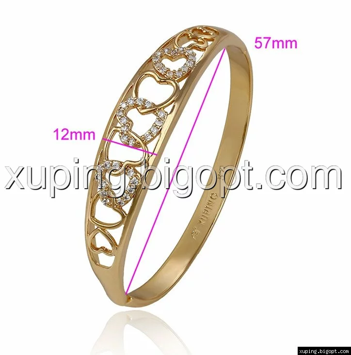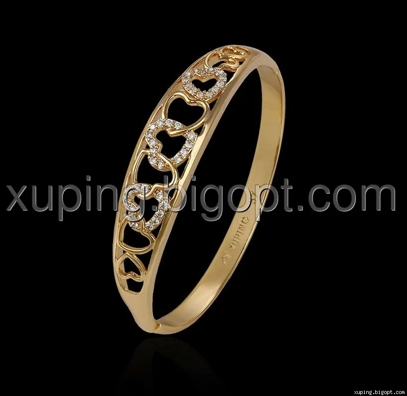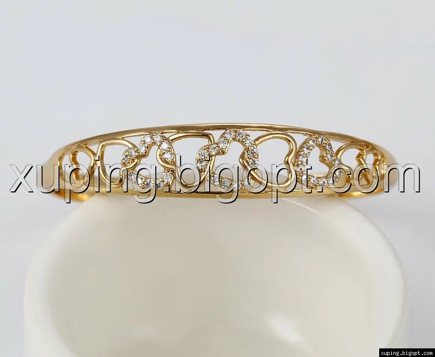 Браслет позолоченный, Сердца с цирконием
