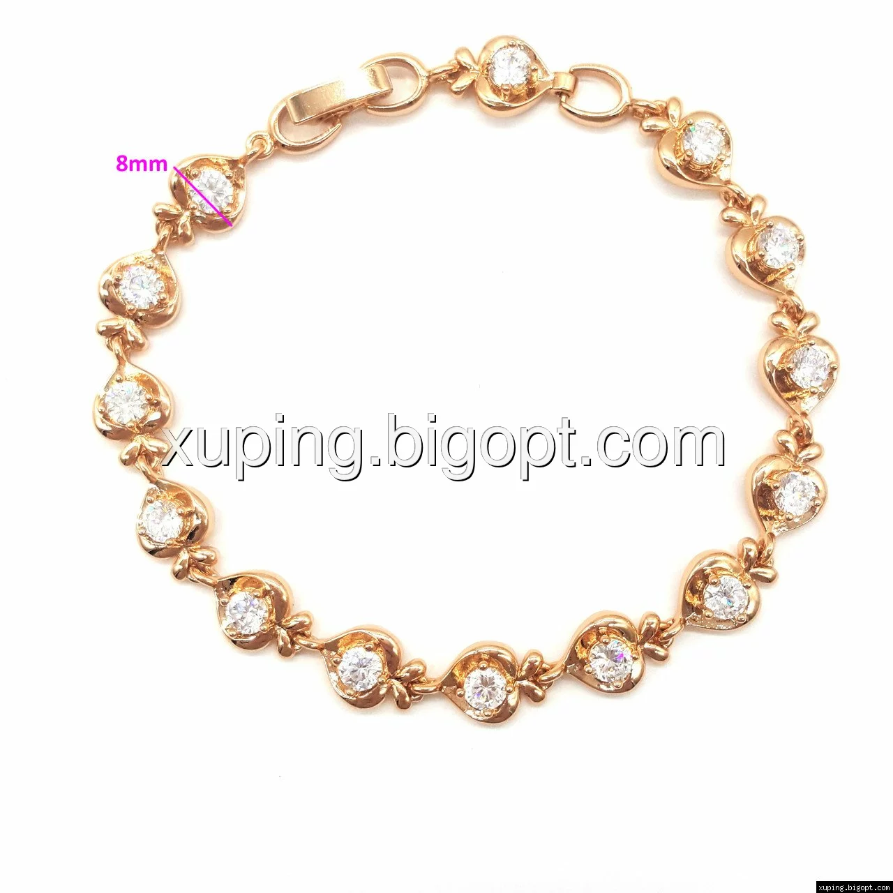Браслет выполнен из медицинского сплава, который  изготовляется на основе латуни. Сверху бижутерия покрыта позолотой  для того чтобы придать ей насыщенный цвет, яркий блеск и максимальное сходство с золотом. Кроме того, в качестве декора мастера используют цирконий, который крепится при помощи крапанов. Как известно этот камень широко применяется в ювелирном искусстве, так как он обладает восхитительным блеском и прочностью. Данная бижутерия представлена заводом-производителем марки «Xuping» – все изделия оригинальны и имеют одинаково высокое качество.