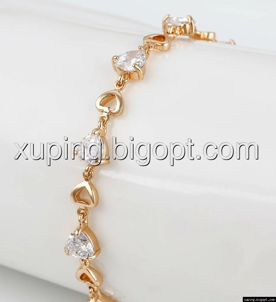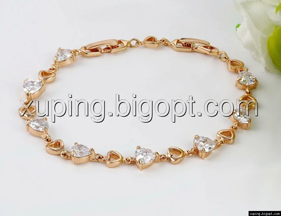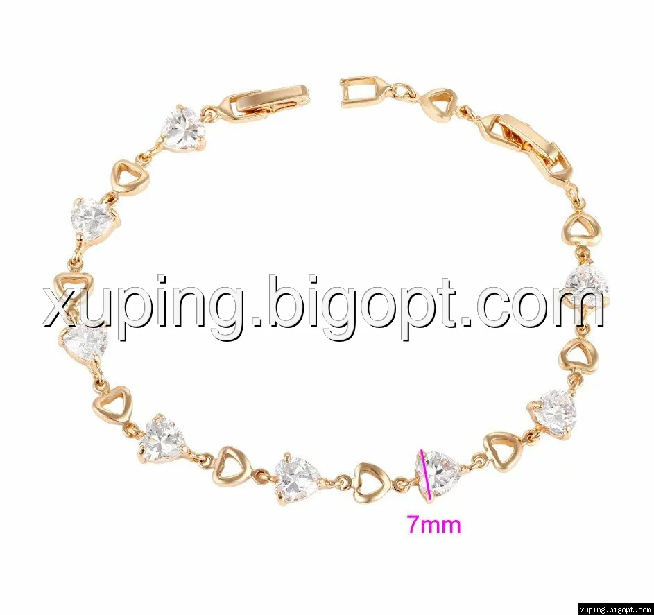 Браслет позолоченный, Цирконий в форме сердец, р.17,5, р.20,5