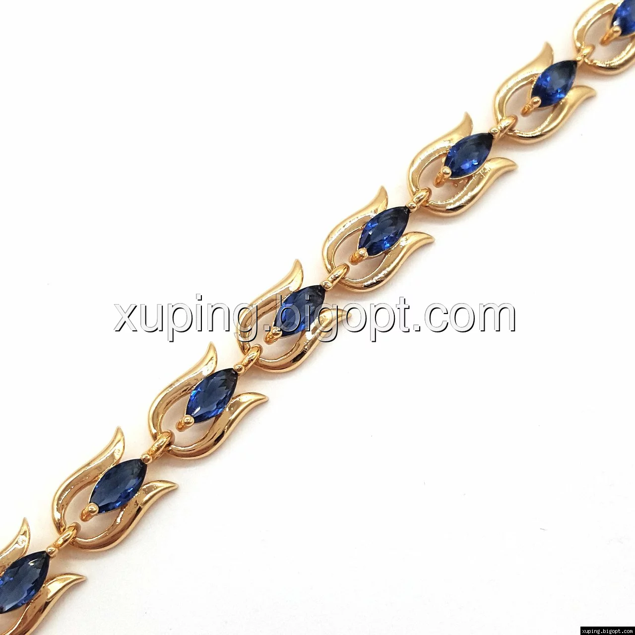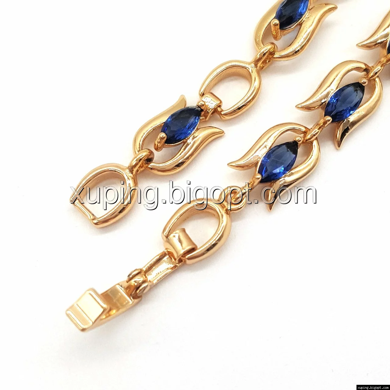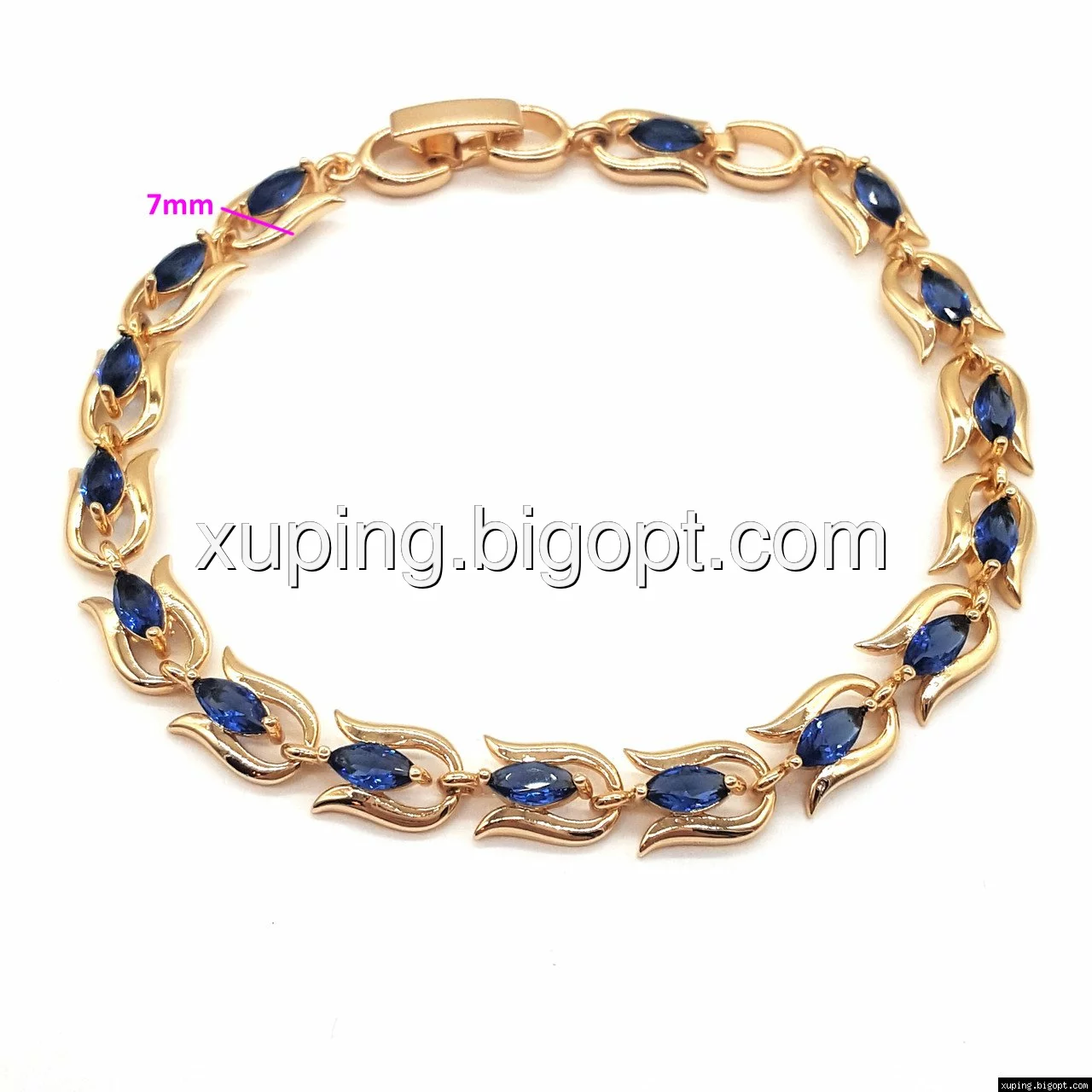Браслет выполнен из медицинского сплава, который  изготовляется на основе латуни. Сверху бижутерия покрыта позолотой  для того чтобы придать ей насыщенный цвет, яркий блеск и максимальное сходство с золотом. Кроме того, в качестве декора мастера используют цирконий, который крепится при помощи крапанов. Как известно этот камень широко применяется в ювелирном искусстве, так как он обладает восхитительным блеском и прочностью. Данная бижутерия представлена заводом-производителем марки «Xuping» – все изделия оригинальны и имеют одинаково высокое качество.