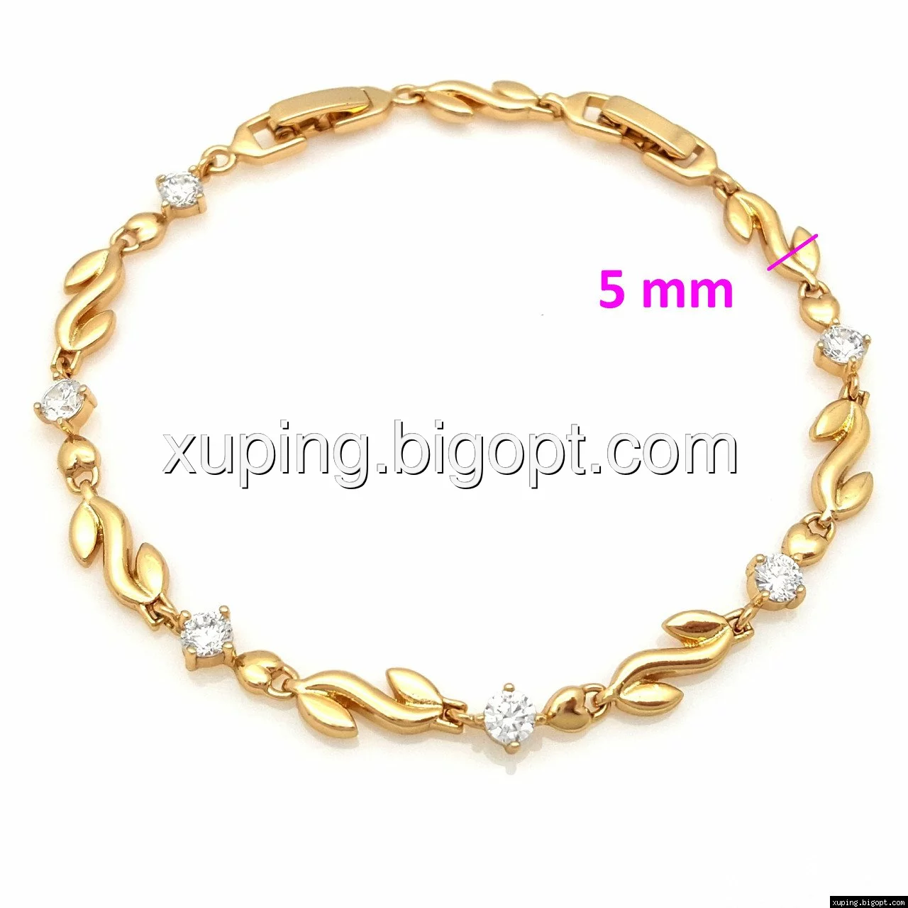 Браслет выполнен из медицинского сплава, который  изготовляется на основе латуни. Сверху бижутерия покрыта позолотой  для того чтобы придать ей насыщенный цвет, яркий блеск и максимальное сходство с золотом. Кроме того, в качестве декора мастера используют цирконий, который крепится при помощи клапанов. Как известно этот камень широко применяется в ювелирном искусстве, так как он обладает восхитительным блеском и прочностью. Данная бижутерия представлена заводом-производителем марки «Xuping» – все изделия оригинальны и имеют одинаково высокое качество.