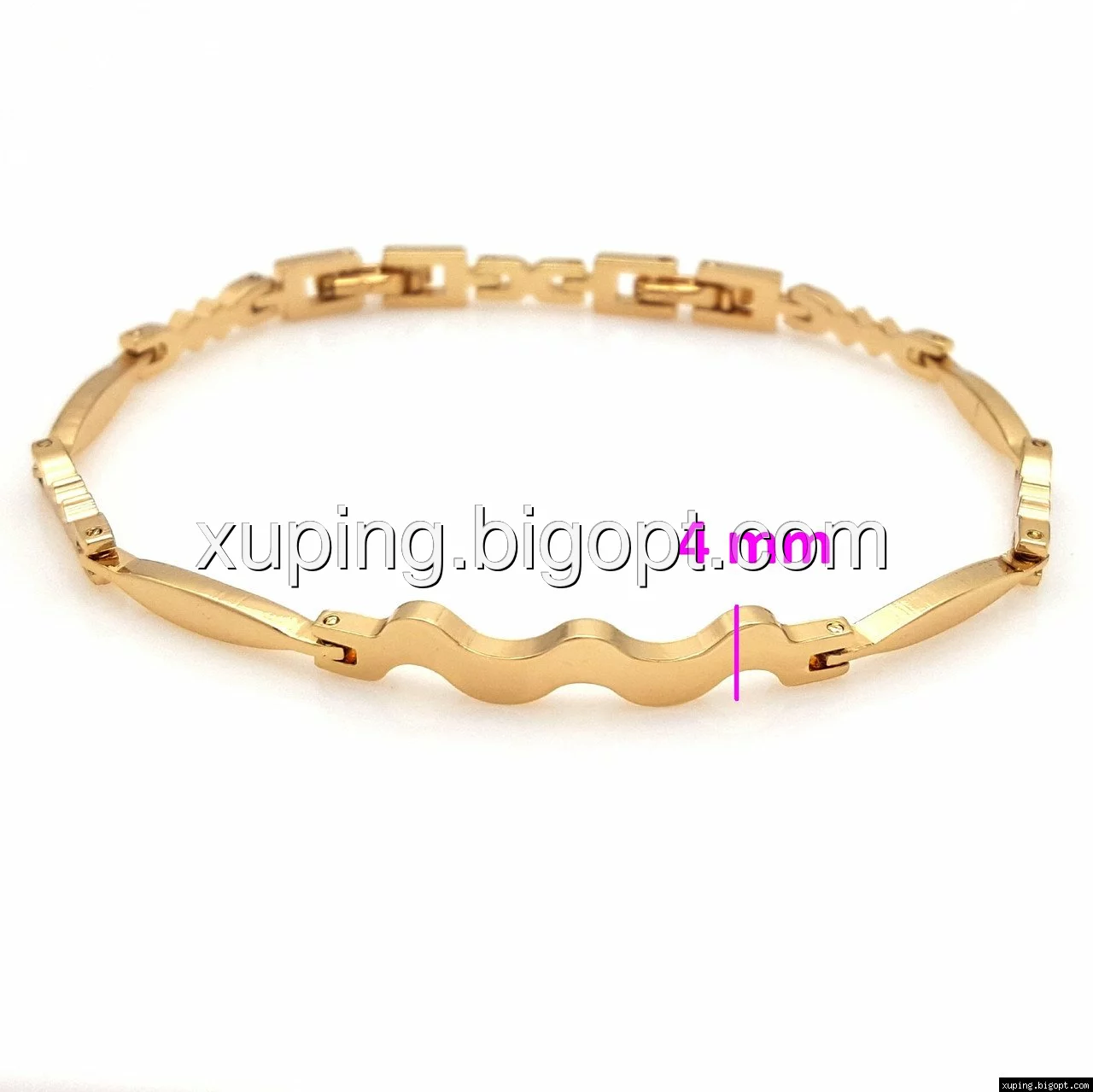 Браслет выполнен из медицинского сплава, который  изготовляется на основе латуни. Сверху бижутерия покрыта позолотой  для того чтобы придать ей насыщенный цвет, яркий блеск и максимальное сходство с золотом. Кроме того, в качестве декора мастера используют цирконий, который крепится при помощи клапанов. Как известно этот камень широко применяется в ювелирном искусстве, так как он обладает восхитительным блеском и прочностью. Данная бижутерия представлена заводом-производителем марки «Xuping» – все изделия оригинальны и имеют одинаково высокое качество.