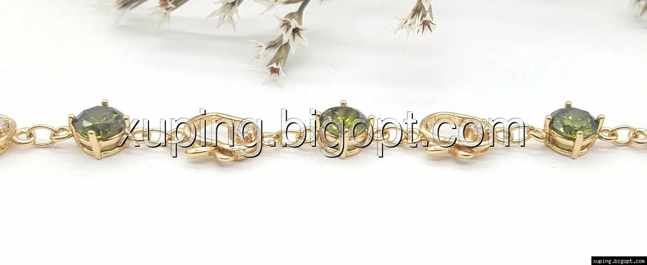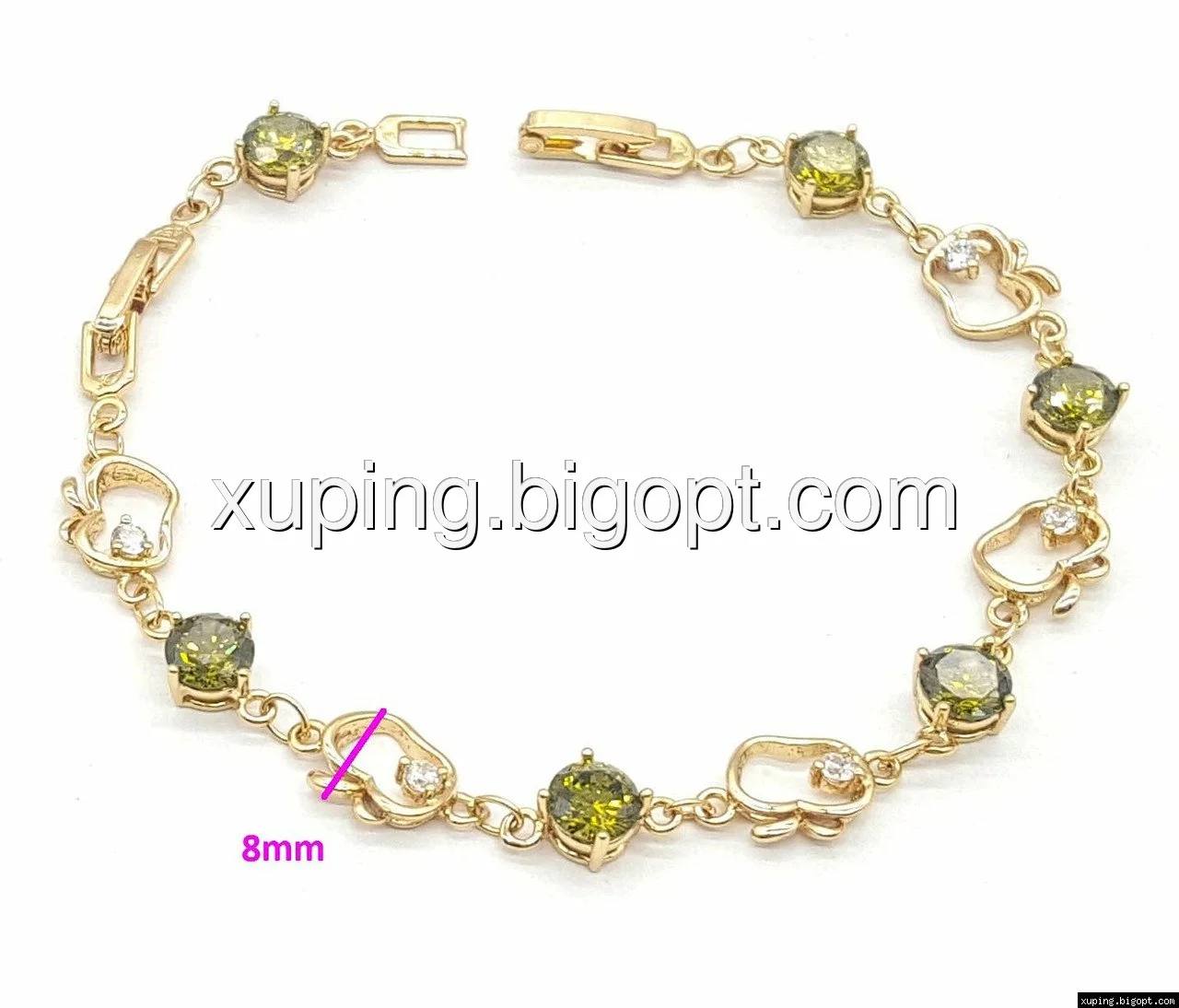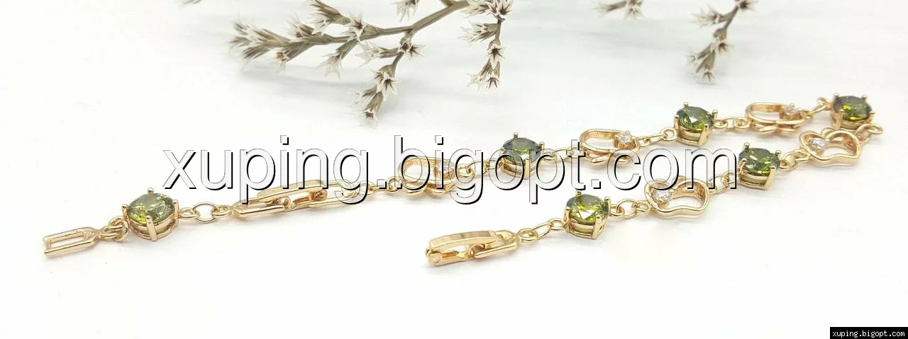 Браслет позолоченный, Яблочки с оливковым цирконием, р.18, р.21,5