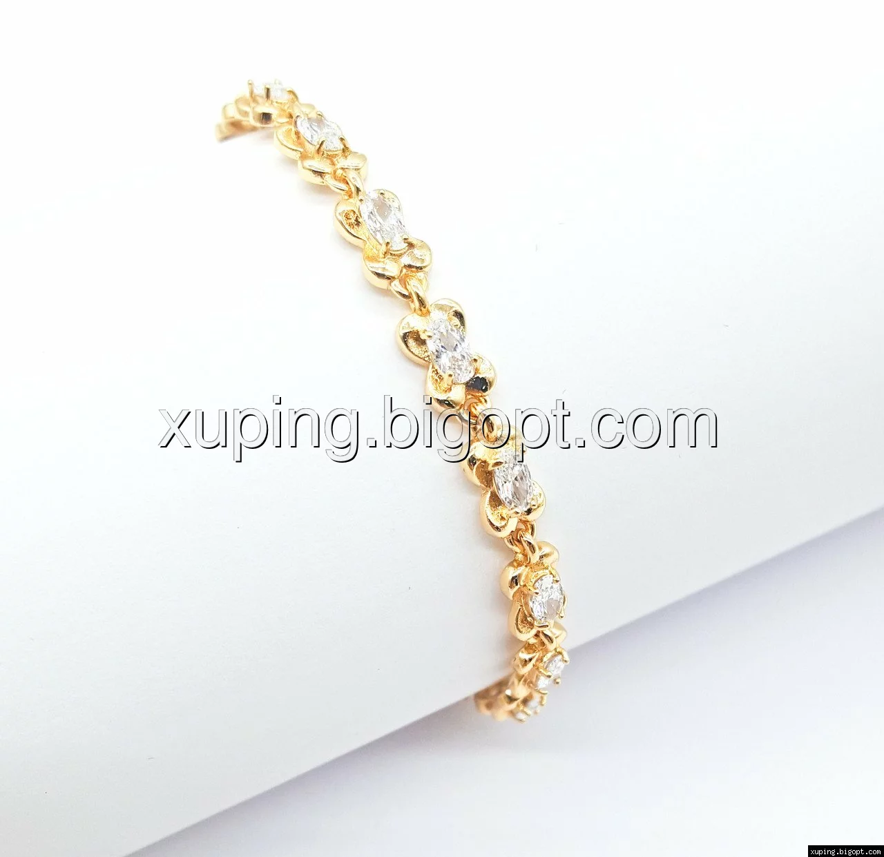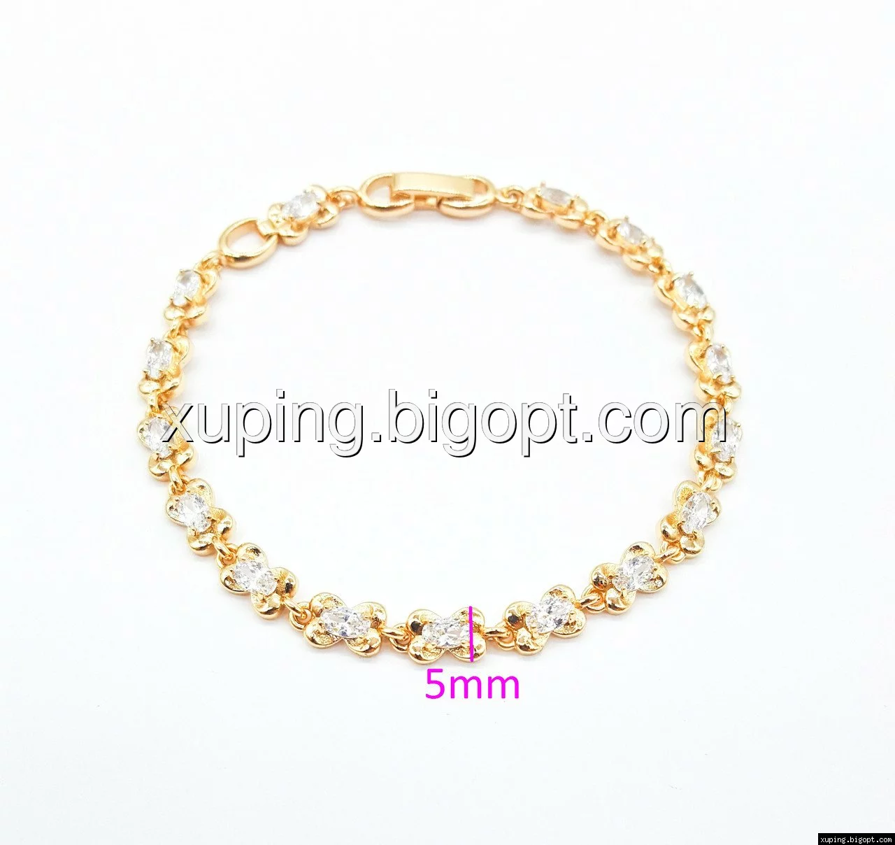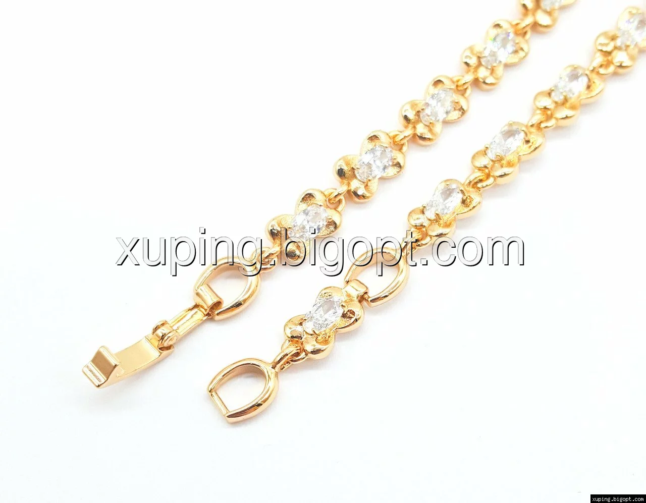 Браслет выполнен из медицинского сплава, который  изготовляется на основе латуни. Сверху бижутерия покрыта позолотой  для того чтобы придать ей насыщенный цвет, яркий блеск и максимальное сходство с золотом. Кроме того, в качестве декора мастера используют цирконий, который крепится при помощи крапанов. Как известно этот камень широко применяется в ювелирном искусстве, так как он обладает восхитительным блеском и прочностью. Данная бижутерия представлена заводом-производителем марки «Xuping» – все изделия оригинальны и имеют одинаково высокое качество.