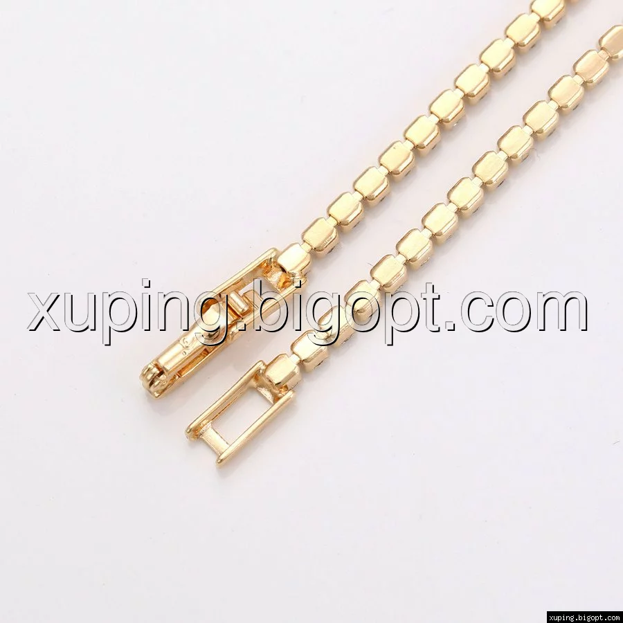 Браслет выполнен из медицинского сплава, который  изготовляется на основе латуни. Сверху бижутерия покрыта позолотой  для того чтобы придать ей насыщенный цвет, яркий блеск и максимальное сходство с золотом. Кроме того, в качестве декора мастера используют цирконий, который крепится при помощи крапанов. Как известно этот камень широко применяется в ювелирном искусстве, так как он обладает восхитительным блеском и прочностью. Данная бижутерия представлена заводом-производителем марки «Xuping» – все изделия оригинальны и имеют одинаково высокое качество.