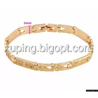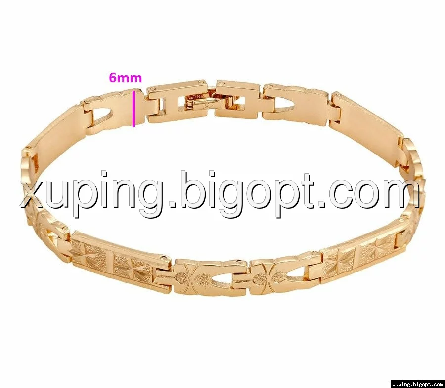 Браслет выполнен из медицинского сплава на основе латуни с добавлением легирующих елементов, с целью улучшения каких-либо его свойств, например коррозионной стойкости или прочности. Такой сплав не вызывает аллергии, не вступает в реакцию с потом человека, не меняет свои свойства под воздействием соленой воды и солнца. Поверхность изделия покрыта золотом 18 карата.